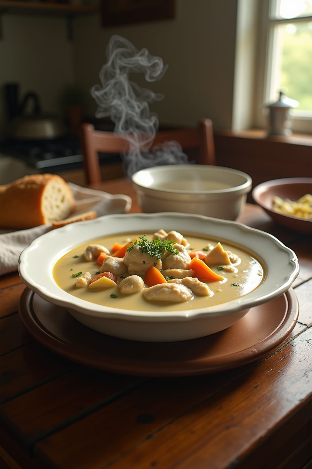 Alabama Chicken Stew is a beloved dish that has been passed down through generations, with each family adding their own personal touch to this hearty comfort food. This classic recipe originated in rural Alabama households where simple ingredients were transformed into nourishing meals that could feed large families through harsh winters and busy harvest seasons. The traditional preparation begins with slowly simmering a whole chicken until the meat falls off the bone, creating a rich, flavorful broth that serves as the foundation of the stew. Farm-fresh vegetables like potatoes, carrots, celery, and onions are added to the pot, absorbing the savory chicken essence while contributing their own sweetness to the medley of flavors. Many heritage recipes call for adding cornmeal dumplings during the final cooking stage, a distinctly Southern touch that thickens the stew while providing delightful pockets of texture throughout. The beauty of this time-honored dish lies in its patient cooking process, often requiring several hours of slow simmering to achieve the perfect marriage of flavors. What distinguishes Alabama Chicken Stew from other regional variations is its balanced seasoning profile—not too spicy but deeply aromatic with herbs like thyme and bay leaves that complement rather than overwhelm the natural flavors of the chicken and vegetables.