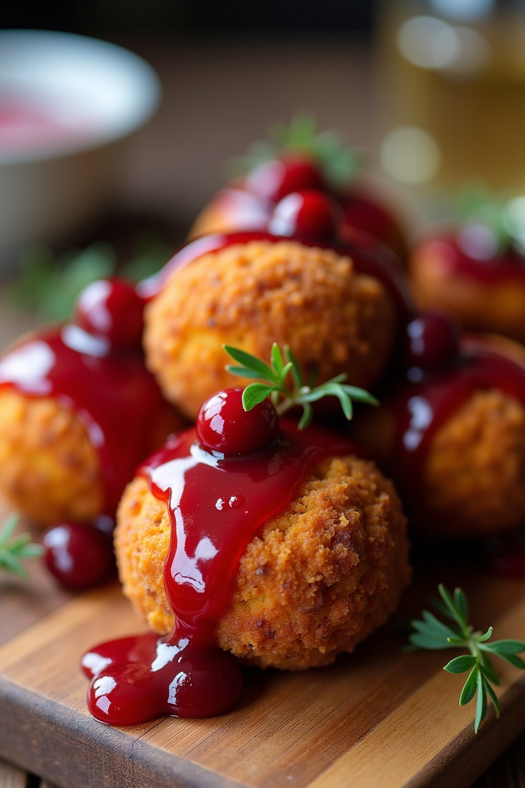 Sweet Potato and Leftover Turkey Baked Croquettes with Cranberry Glaze