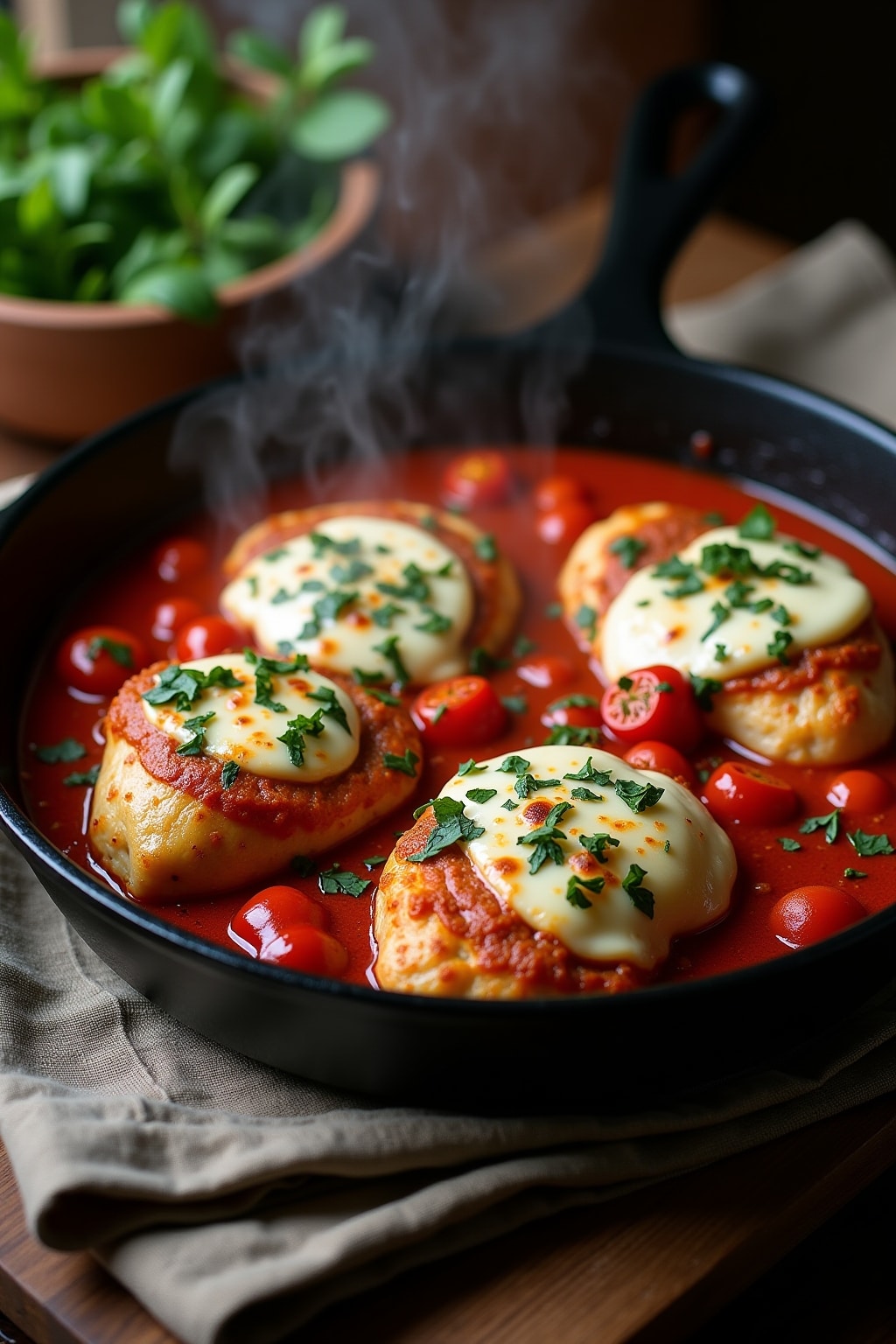 • Garnish with fresh chopped parsley for color and freshness