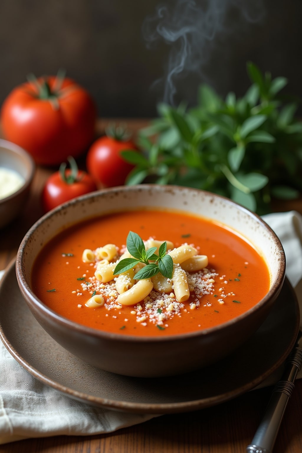 Creamy Tomato Orzo Soup with Parmesan and Fresh Herbs