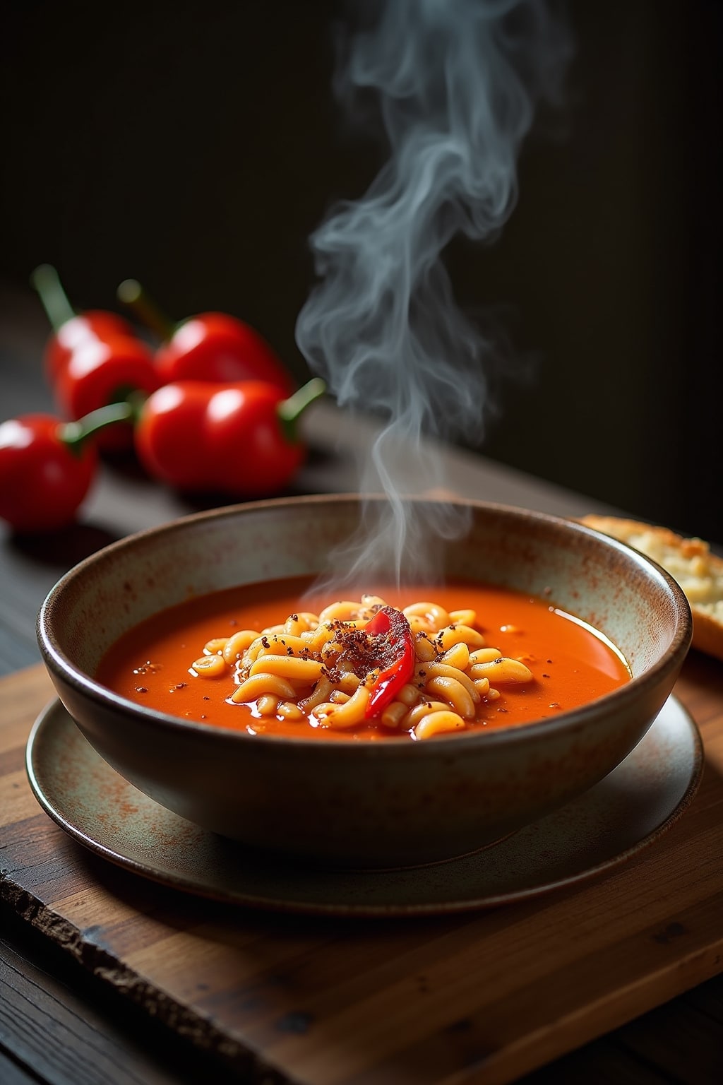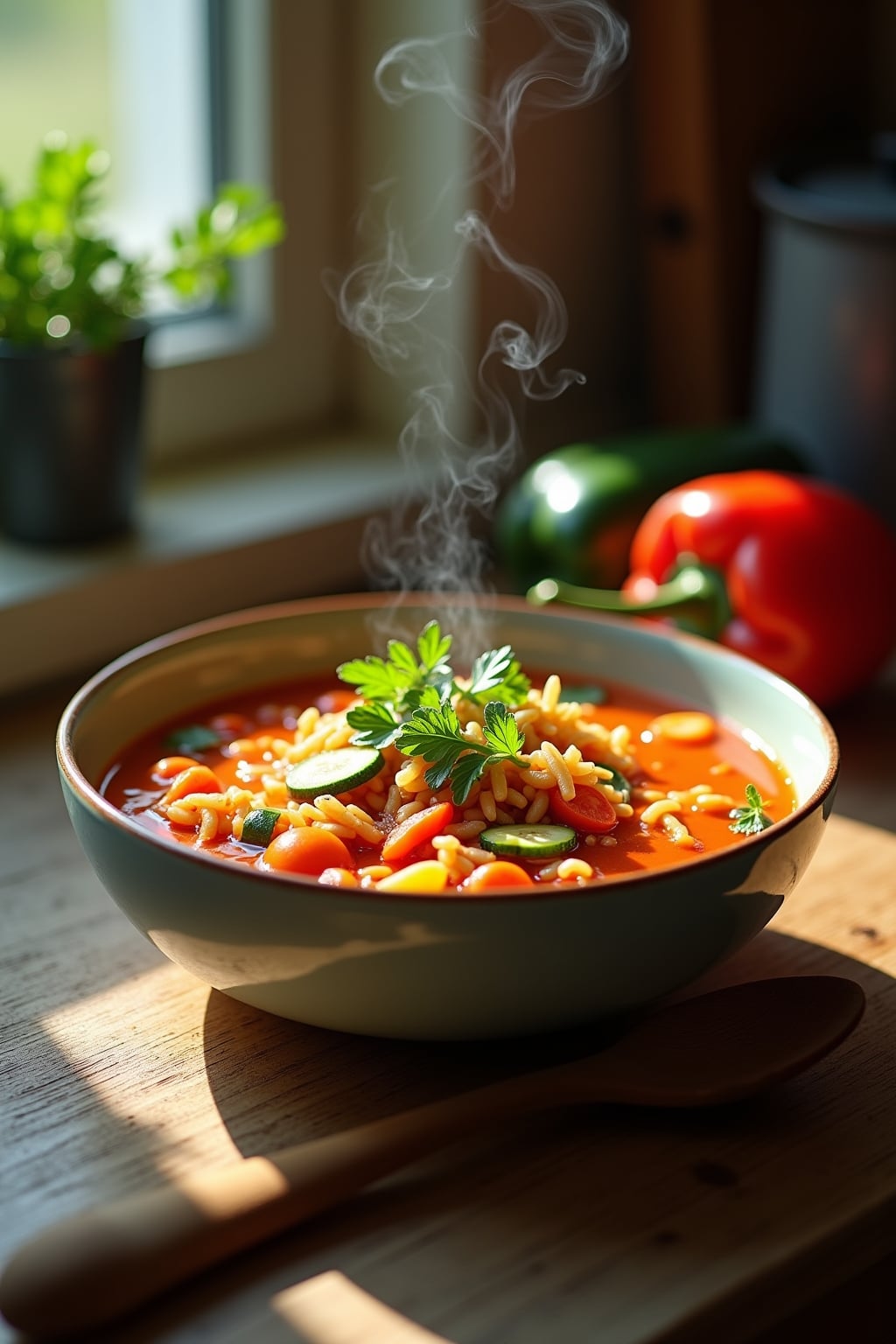 Spicy Tomato Orzo Soup with Roasted Red Peppers