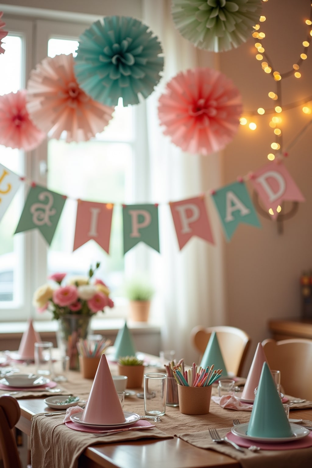 1. Paper pom-pom garlands in pastel ombre colors