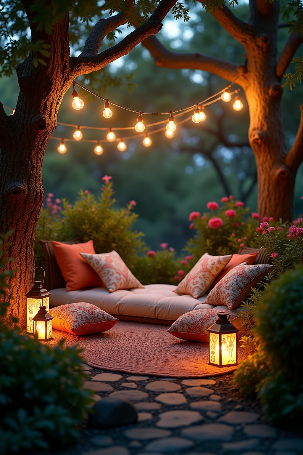 Boho Gartenideen: Magische Lichterketten für eine verwunschene Atmosphäre