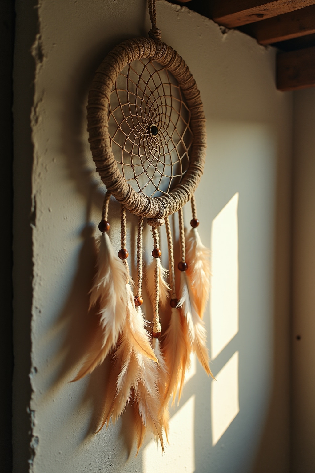 6. Boho-Chic Traumfänger mit goldenen Perlen und naturfarbenen Schnüren