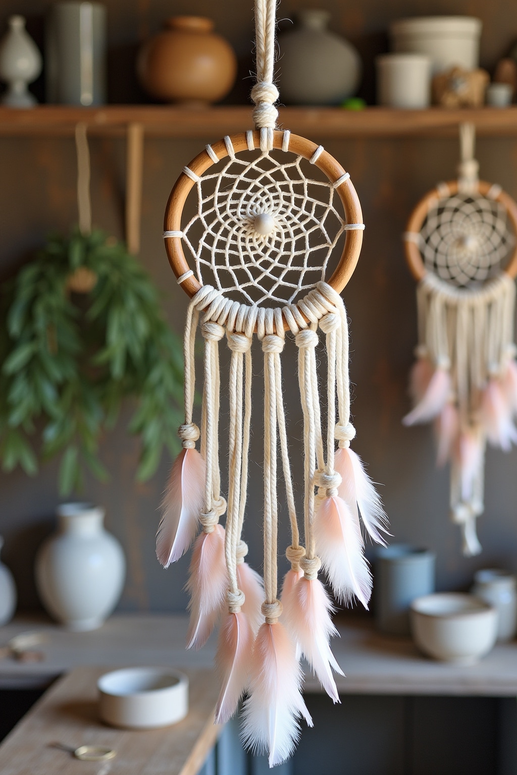 4. Pastell-Traumfänger mit zarten Federn und Kristallen