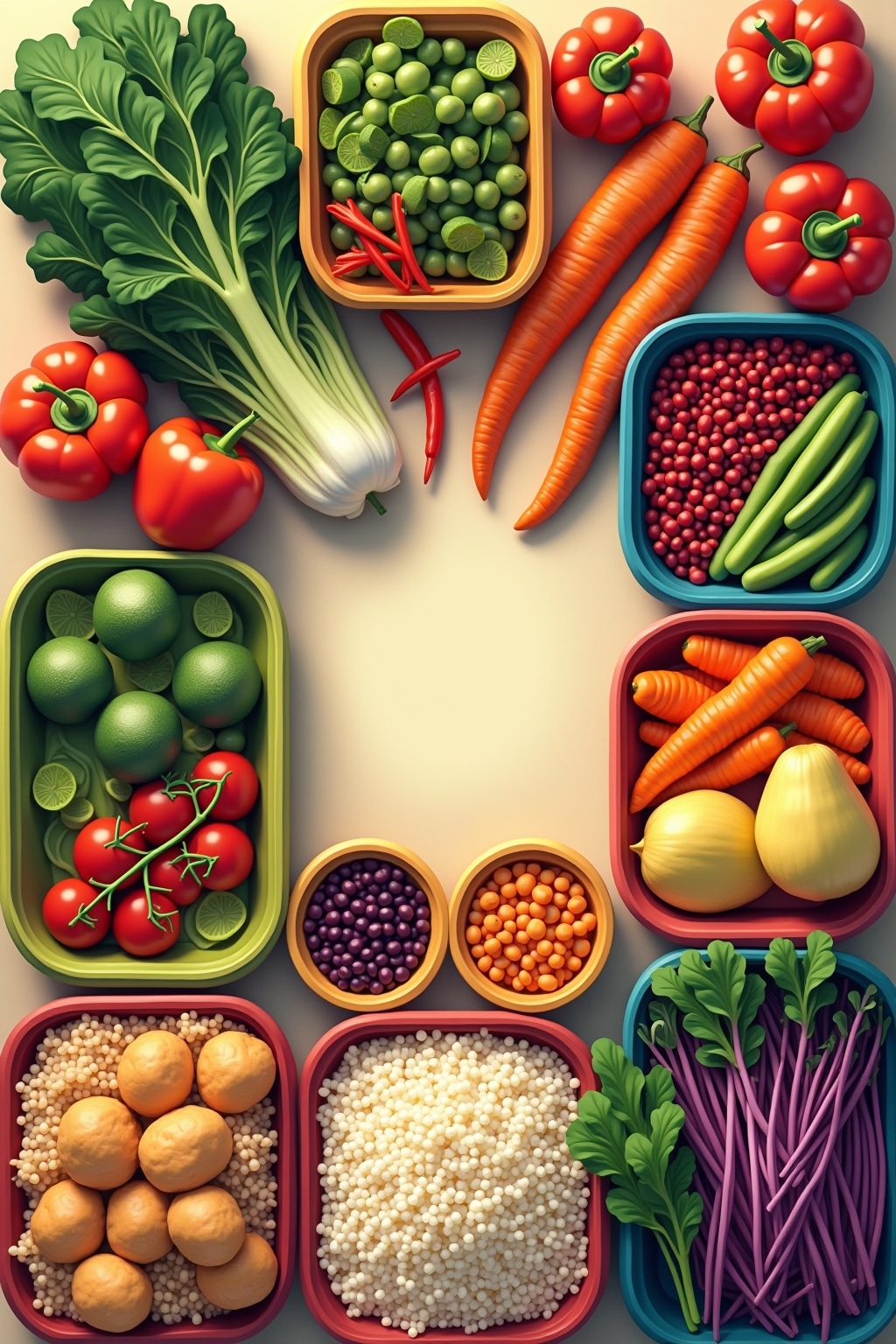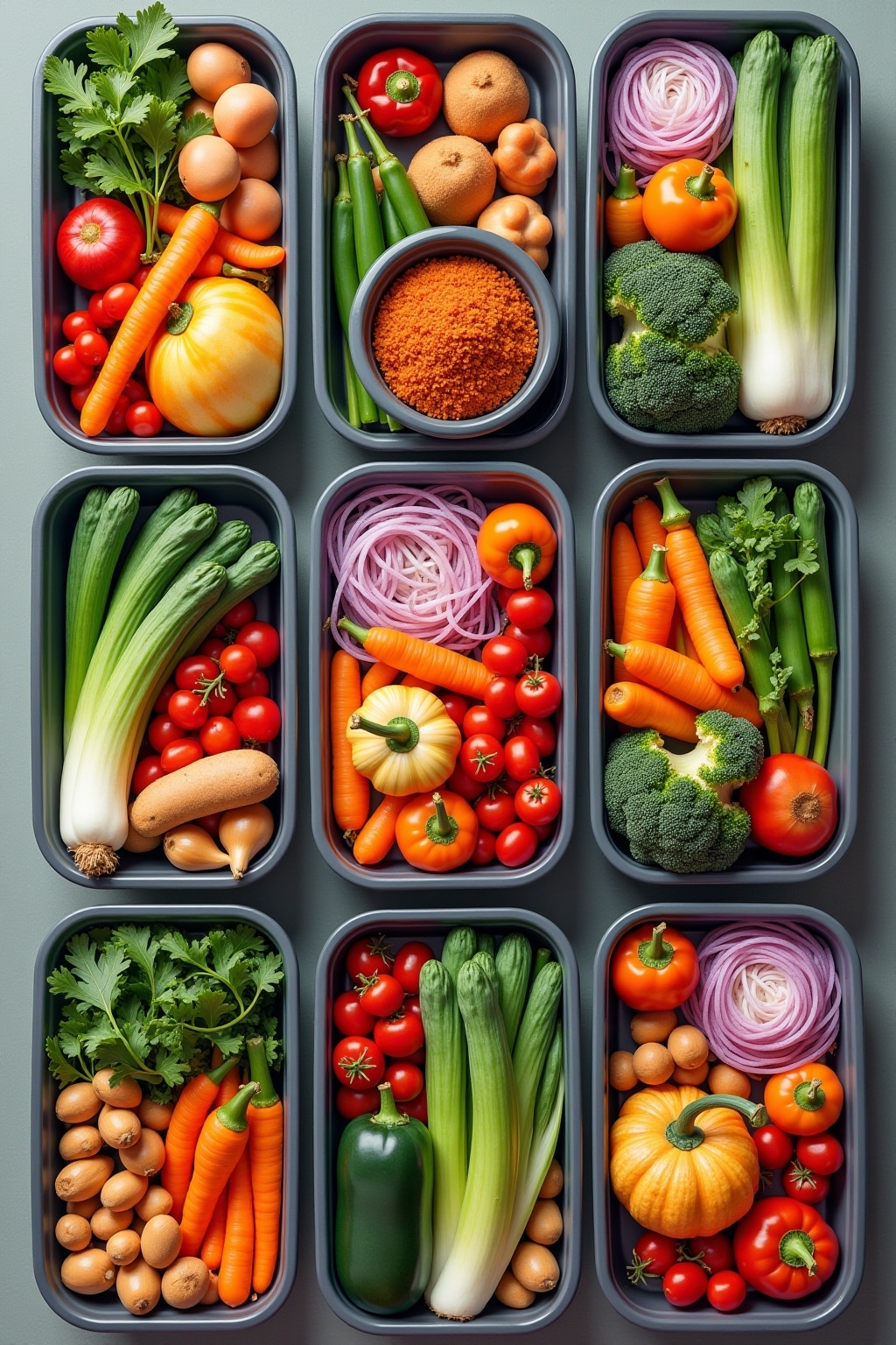 2. Bereite Grundzutaten wie Reis, Quinoa oder geröstetes Gemüse in großen Mengen vor