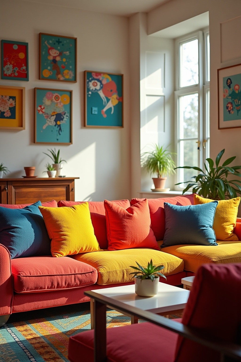 4. Leuchtende Sofakissen in kontrastierenden Farben