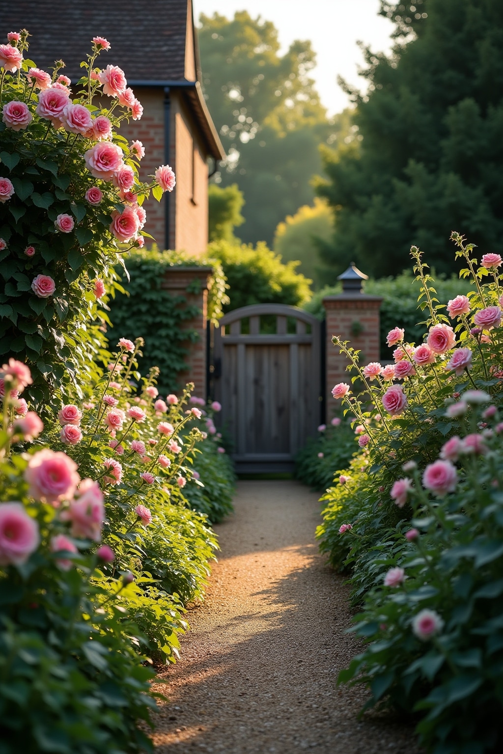 – Romantische Kletterpflanzen wie Rosen, Clematis und Geißblatt an Hauswänden und Zäunen