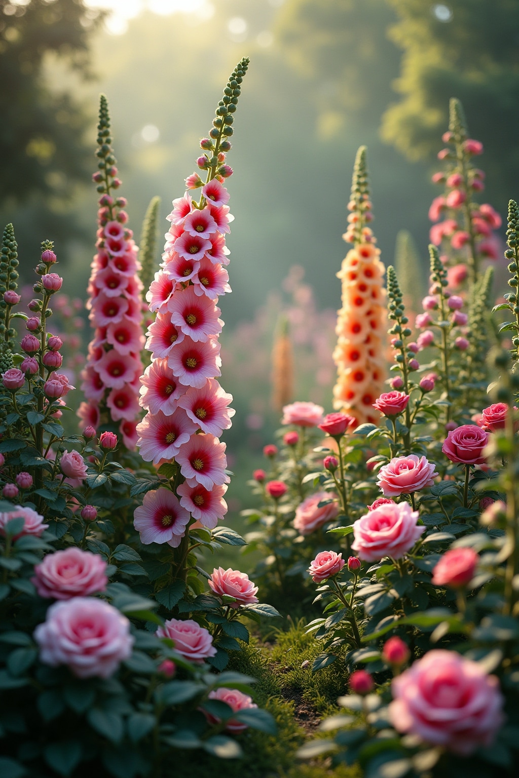 • Stockrosen für vertikale Akzente und ländlichen Charme