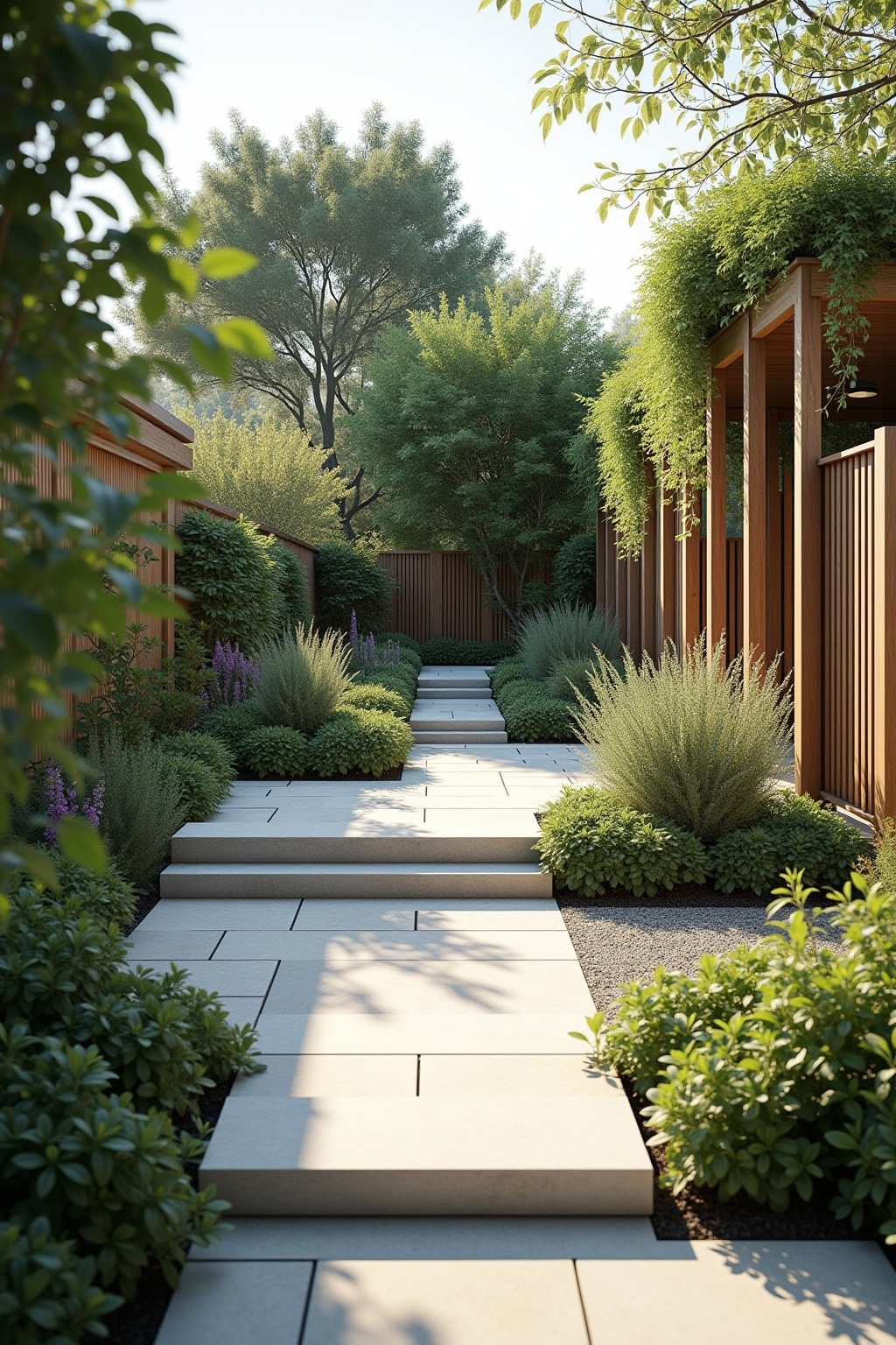 – Informelle, geschwungene Wege aus natürlichen Materialien wie Kies oder Naturstein