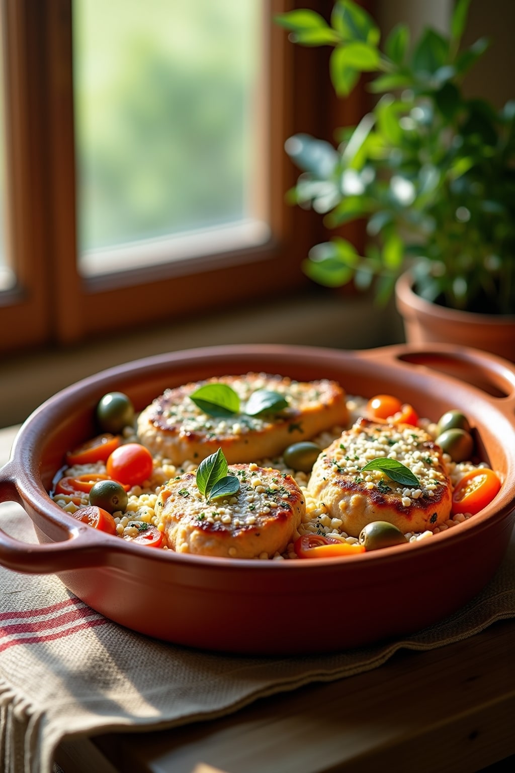 • Mediterranean Chicken Casserole with olives, feta, and sun-dried tomatoes