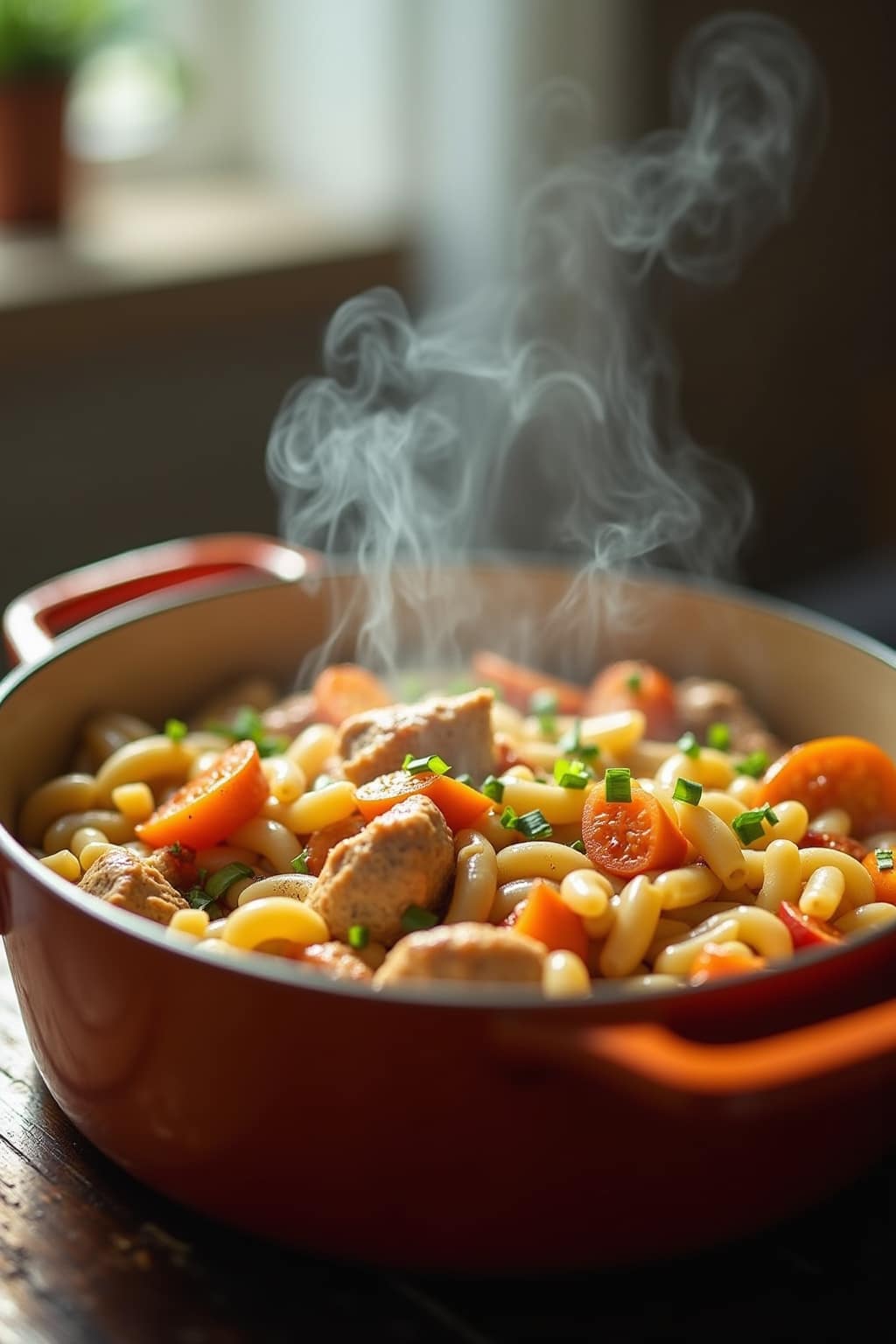 Looking for a fuss-free dinner that’ll satisfy your hungry family without keeping you chained to the kitchen? This One-Pot Chicken Noodle Casserole is your new secret weapon for those hectic weeknights when time is in short supply but you still want to serve something homemade and delicious. You’ll love how everything—tender chicken chunks, hearty egg noodles, and colorful veggies—comes together in a single dish, meaning fewer pots and pans to scrub after dinner. The creamy sauce brings all the flavors together, creating that comforting taste that reminds you of grandma’s cooking but takes half the effort. What’s more, you can easily prep components ahead of time, like chopping vegetables or cooking chicken on the weekend, to make the actual cooking process even speedier when you’re racing against the clock on a Tuesday night. Kids and adults alike will eagerly dig into this crowd-pleasing casserole that combines familiar flavors in a satisfying one-dish meal. Whether you’re juggling after-school activities, late work meetings, or just don’t feel like spending hours in the kitchen, this recipe proves that a homemade dinner is still possible even on your busiest days.