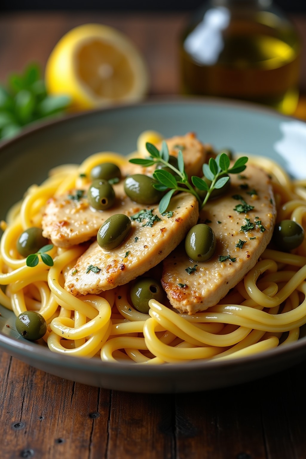 Mediterranean Chicken Piccata Pasta Recipe with Olives and Artichokes