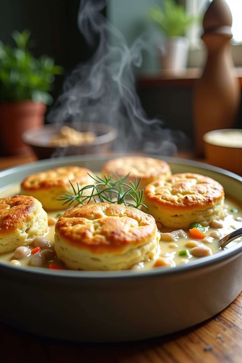 Biscuit-Topped Herb & Vegetable Chicken Pot Pie Casserole Recipe