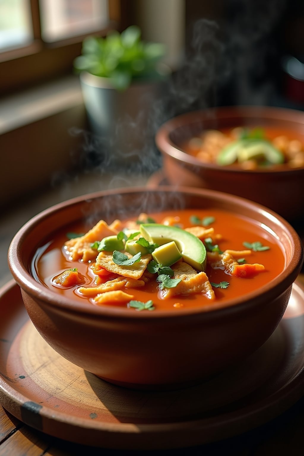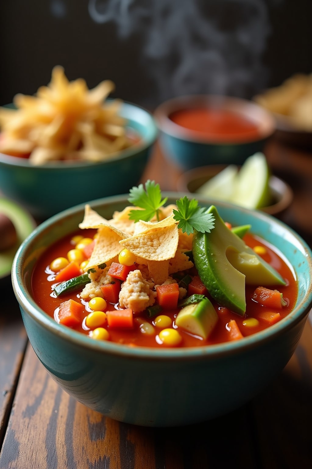 5. Garnish with both crispy tortilla strips and diced avocado for textural contrast