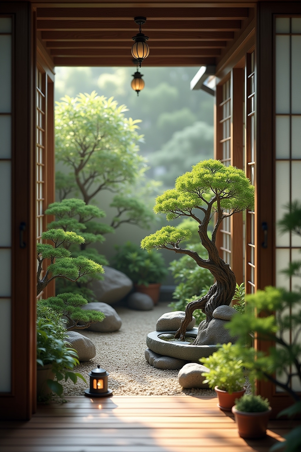 4. Platzierung einer kompakten Steinlaterne als Lichtquelle