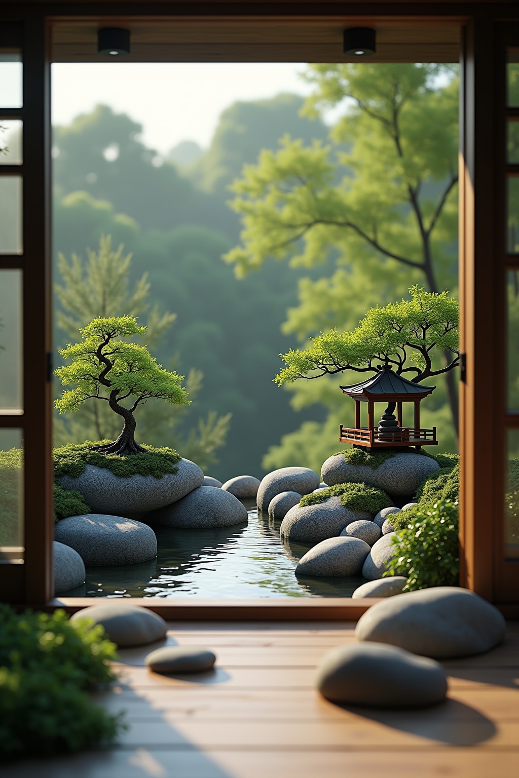 – Kleine Pagode oder Brücke als Blickfang integrieren