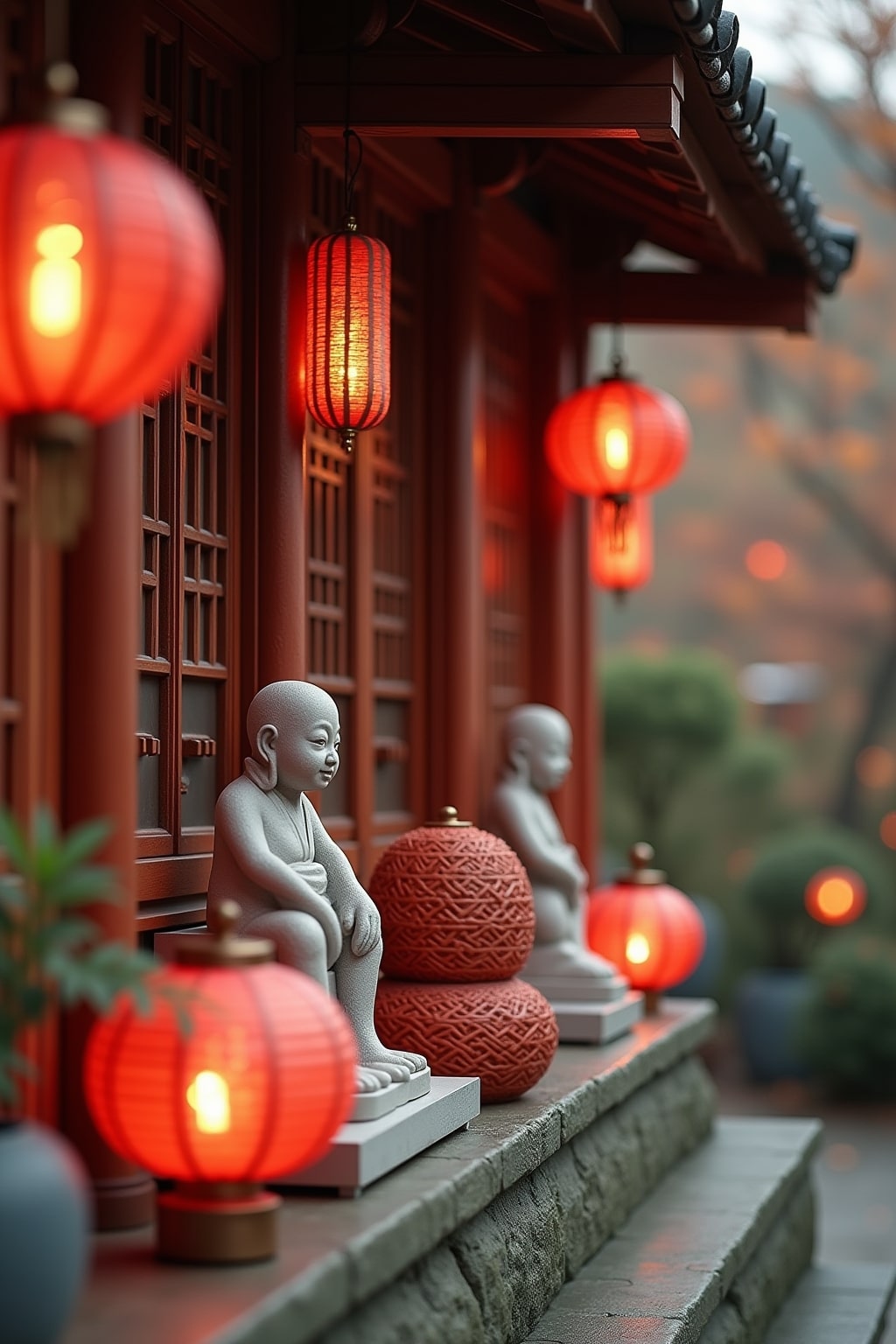 # Chinesische Balkon-Dekoration: Von Laternen bis zu Figuren