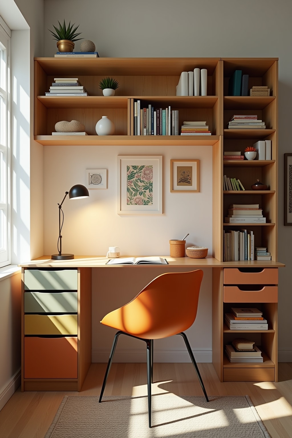 10. Modulare Regalsysteme mit beweglichen Boxen, die als farbenfrohe Aufbewahrung und dekorative Elemente dienen