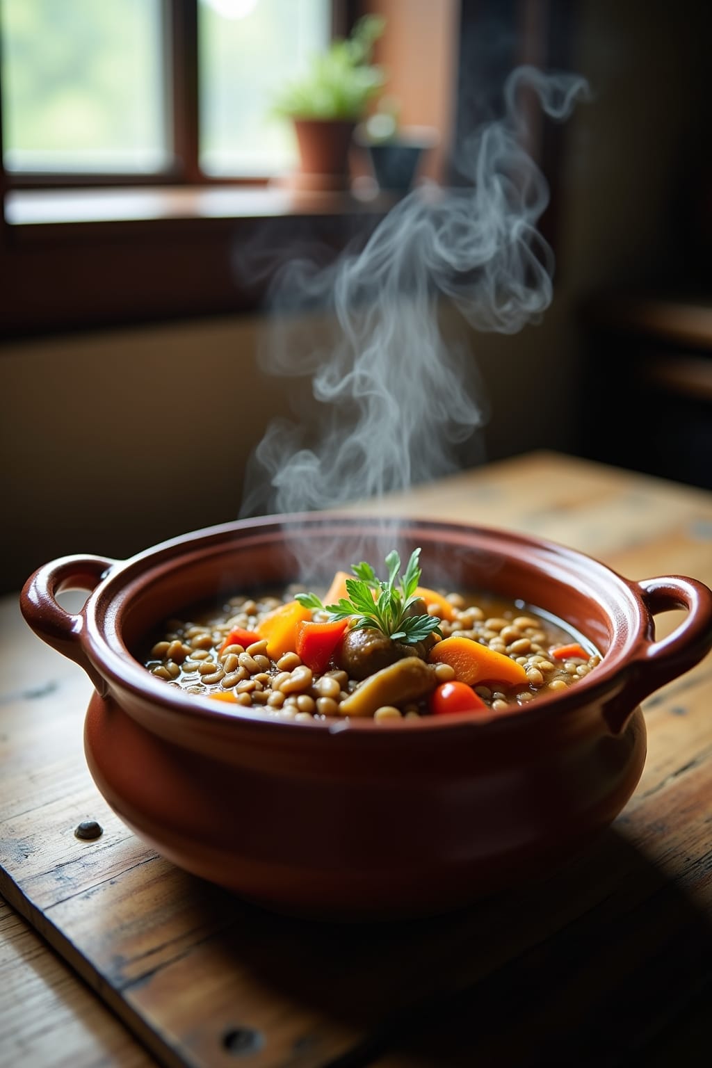 2. Hearty Beef and Barley Stew with root vegetables