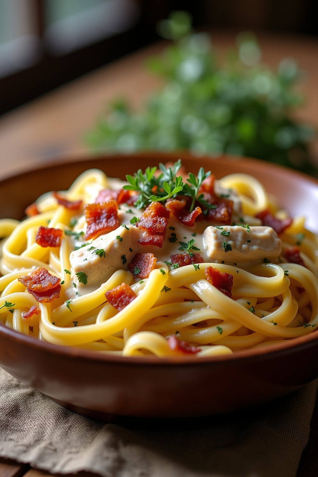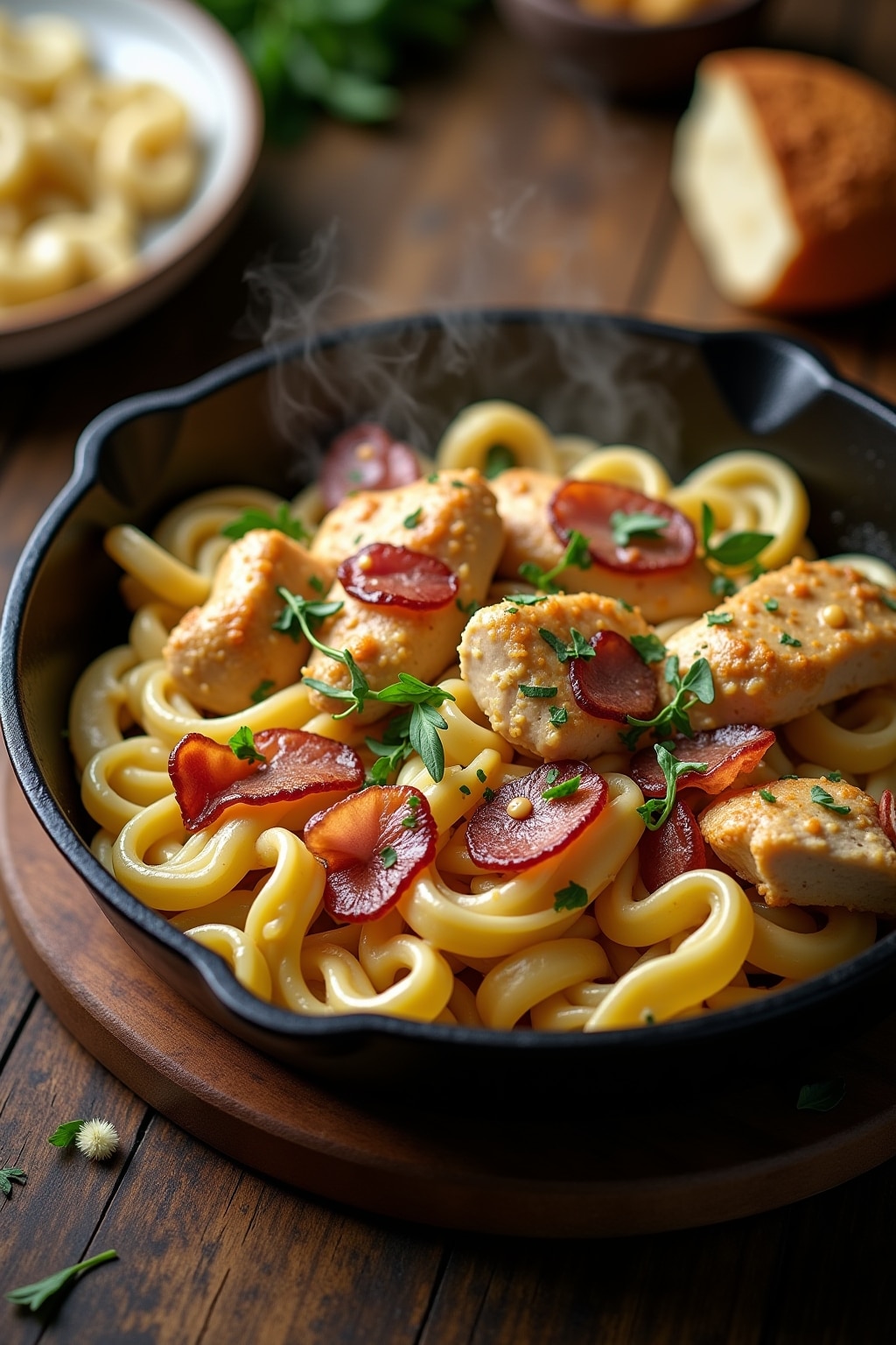 Indulge in the ultimate comfort food with this timeless Classic Creamy Chicken Bacon Ranch Pasta that never fails to satisfy cravings and impress dinner guests. The combination of tender chicken pieces and crispy bacon creates a perfect textural contrast that elevates this dish beyond ordinary pasta meals. A rich, velvety sauce made with real cream, ranch seasoning, and freshly grated Parmesan cheese coats each pasta strand with decadent flavor that will have everyone asking for seconds. The aromatic blend of garlic, herbs, and spices in the ranch seasoning provides depth to the dish without overpowering the main ingredients. While this recipe feels indulgent, it comes together in under 30 minutes, making it ideal for busy weeknights when you need comfort food fast. The versatility of this classic dish allows for endless customization—add vegetables like peas, broccoli, or spinach for extra nutrition, or spice it up with red pepper flakes for heat. What makes this particular version stand out is the careful balance of creamy, savory, and herbaceous notes that create a truly memorable dining experience.