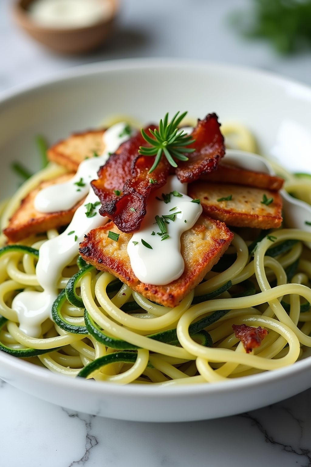 Low-Carb Zucchini Noodle Chicken Bacon Ranch Pasta