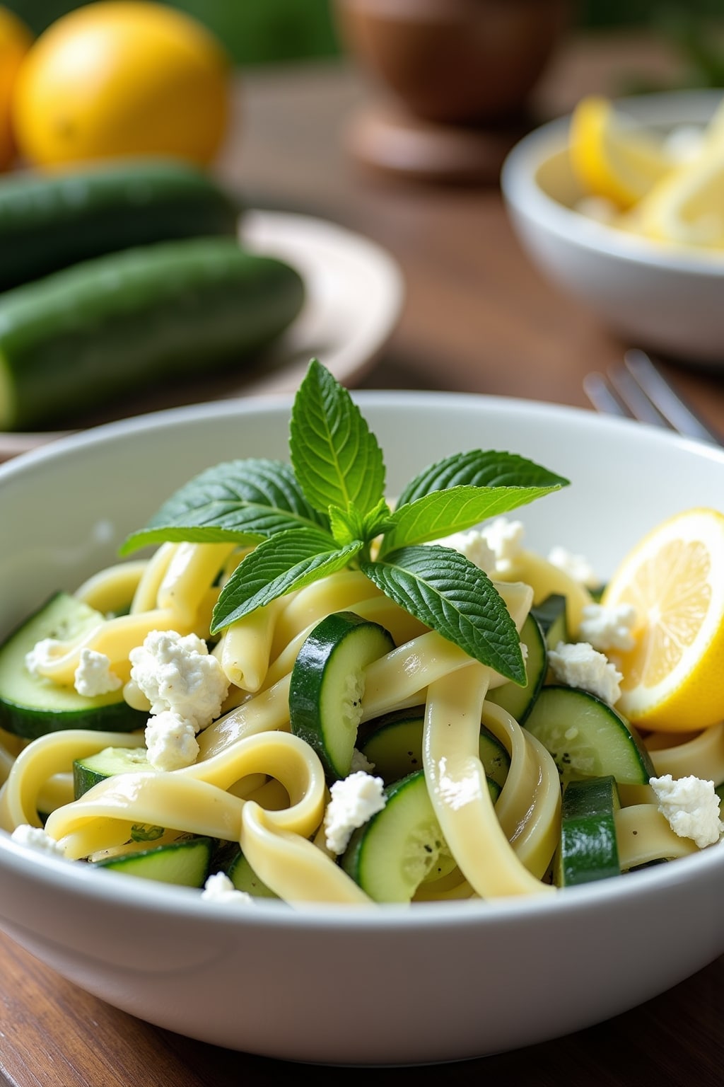 Refreshing Lemon-Mint Cucumber Pasta Salad Recipe with Feta