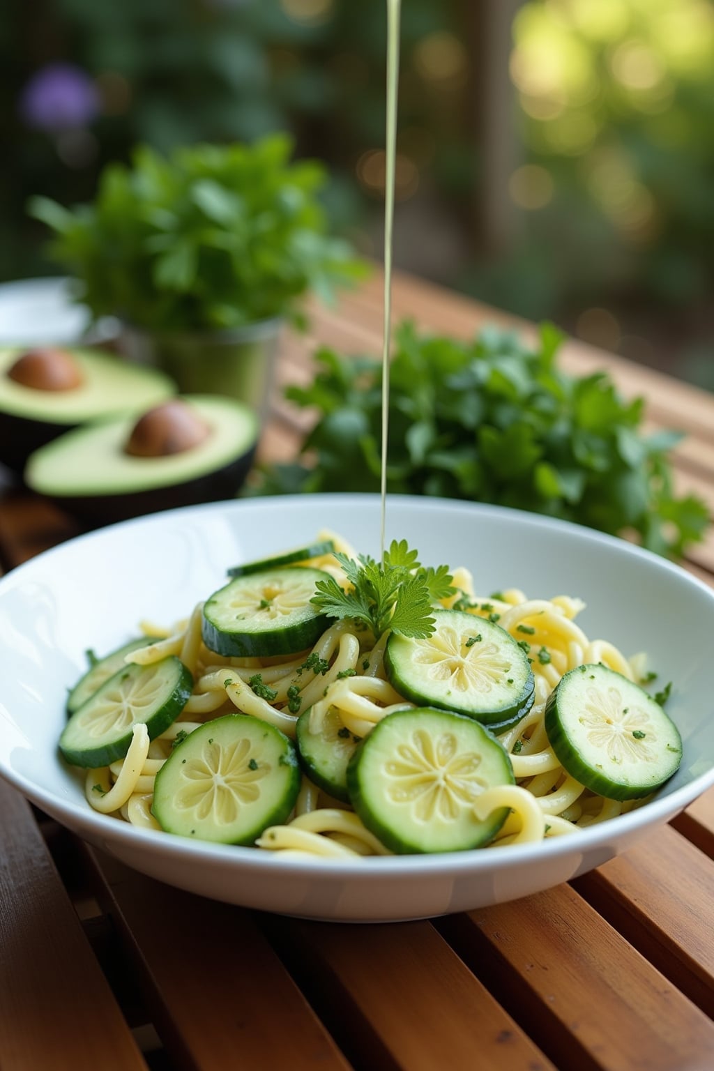 Cucumber Pasta Salad Recipe with Avocado and Lime Vinaigrette