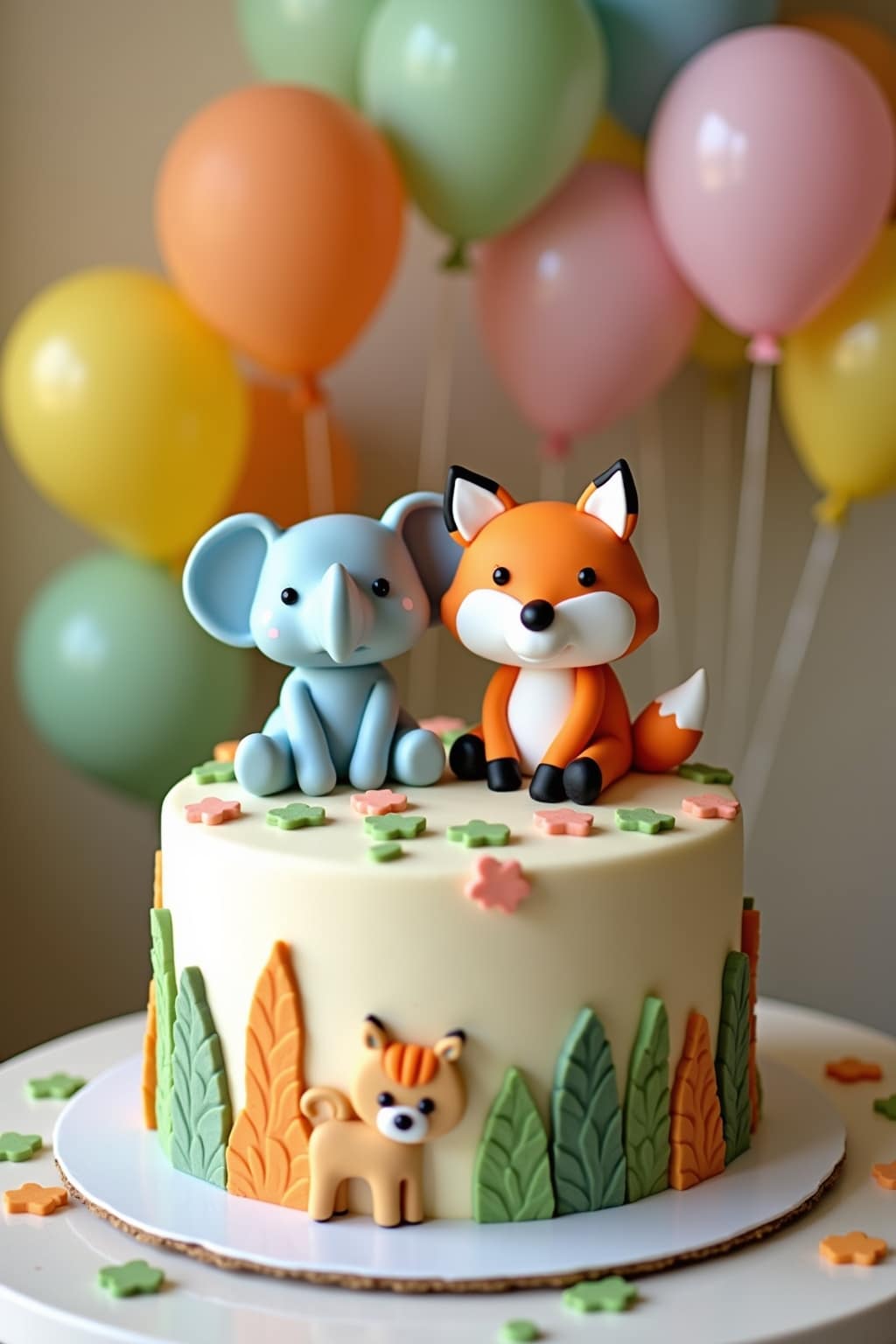 4. Add character with fondant cutouts shaped like animals, flowers, or favorite cartoon characters
