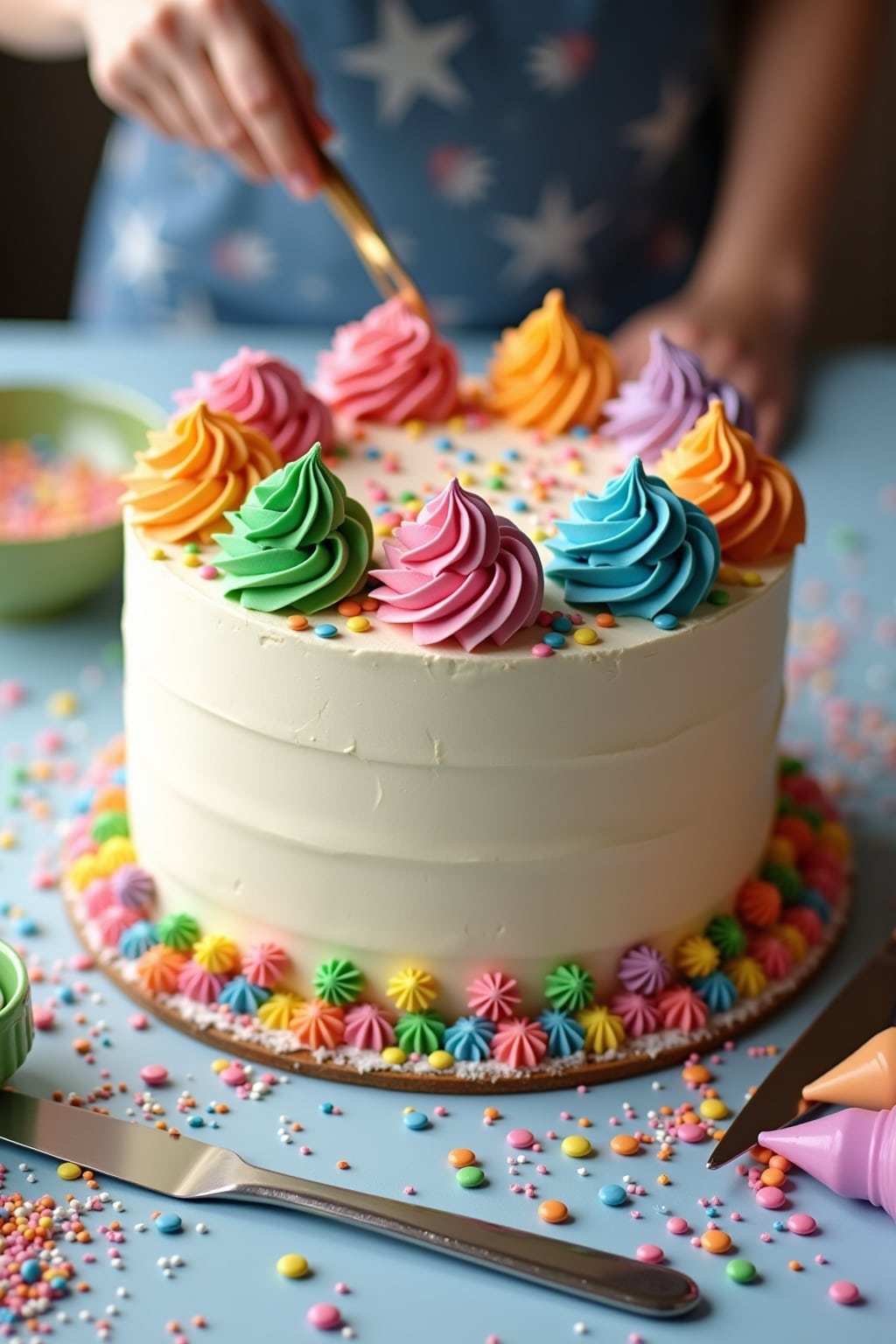 1. Rainbow sprinkle explosion cake with simple buttercream frosting