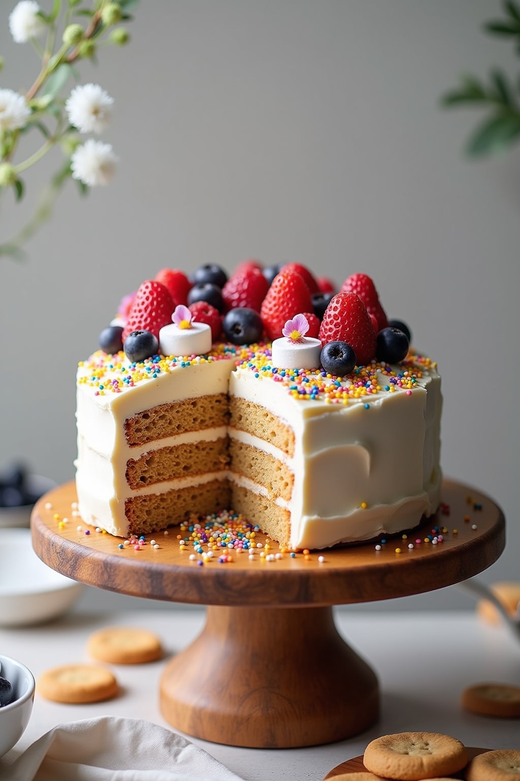 1. Individual 4-inch naked cakes topped with fresh berries and edible flowers
