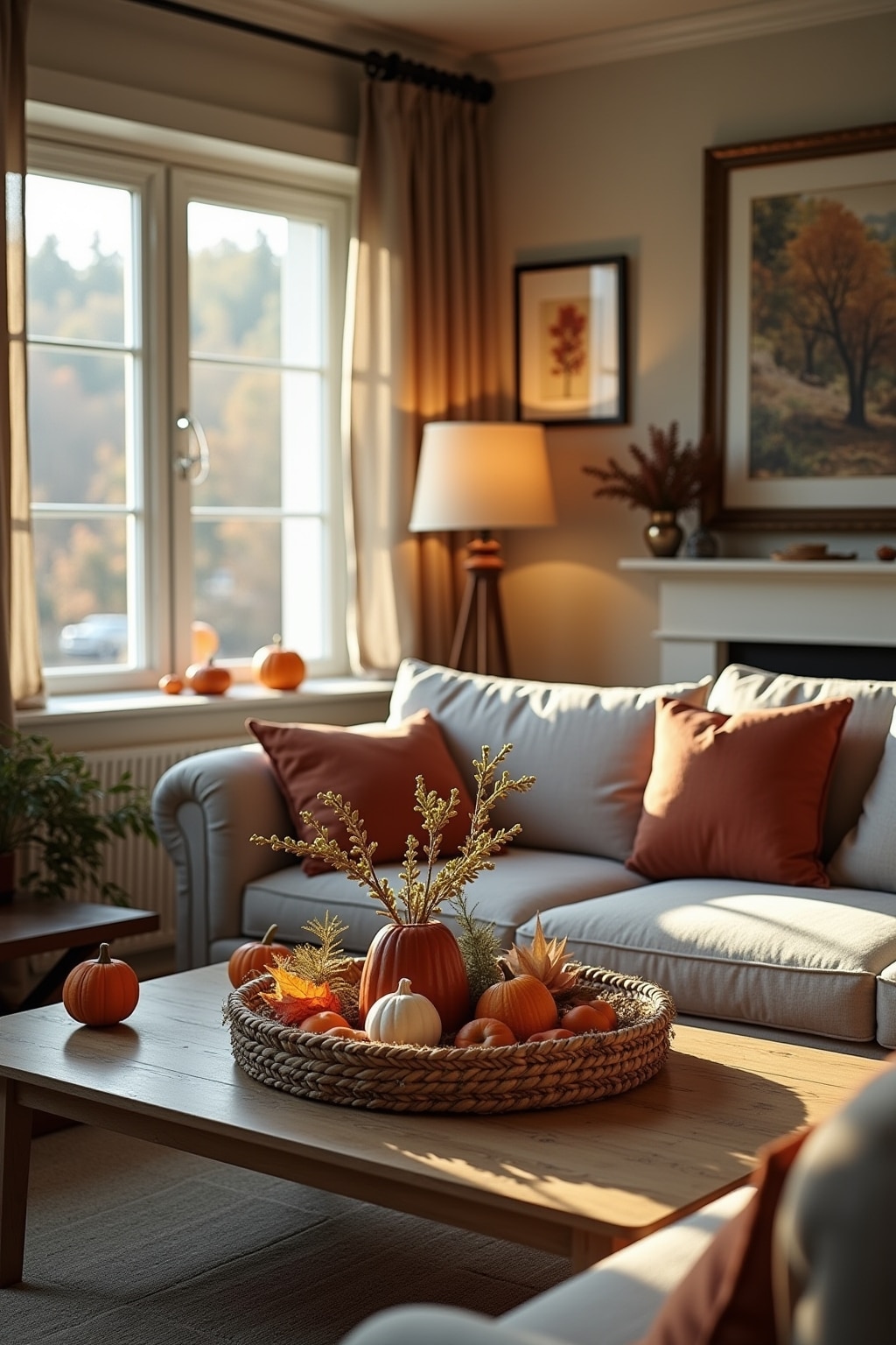 3. Create seasonal vignettes on mantels, consoles, and coffee tables using themed collections