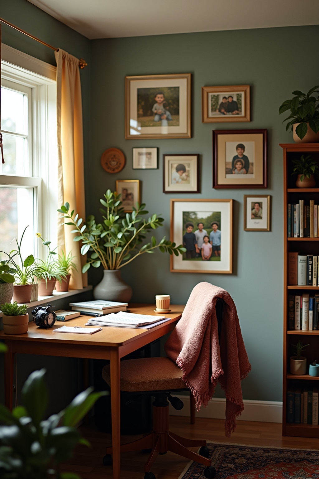 1. Display a curated gallery wall featuring family photos and artwork that tells your story