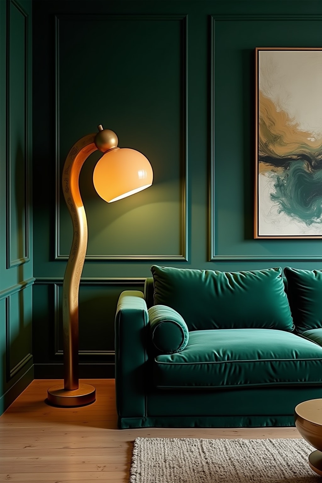 6. Conversation-starting furniture like a velvet sofa in jewel tones or uniquely shaped armchairs