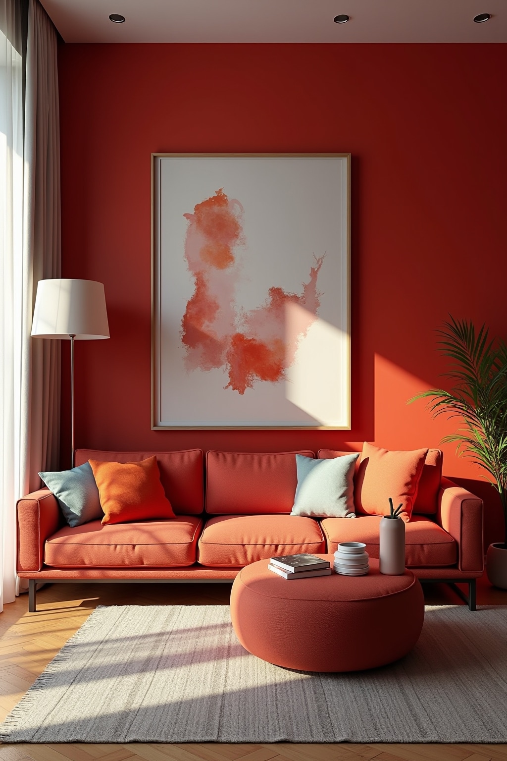 1. Oversized canvas artwork that spans nearly the entire wall height