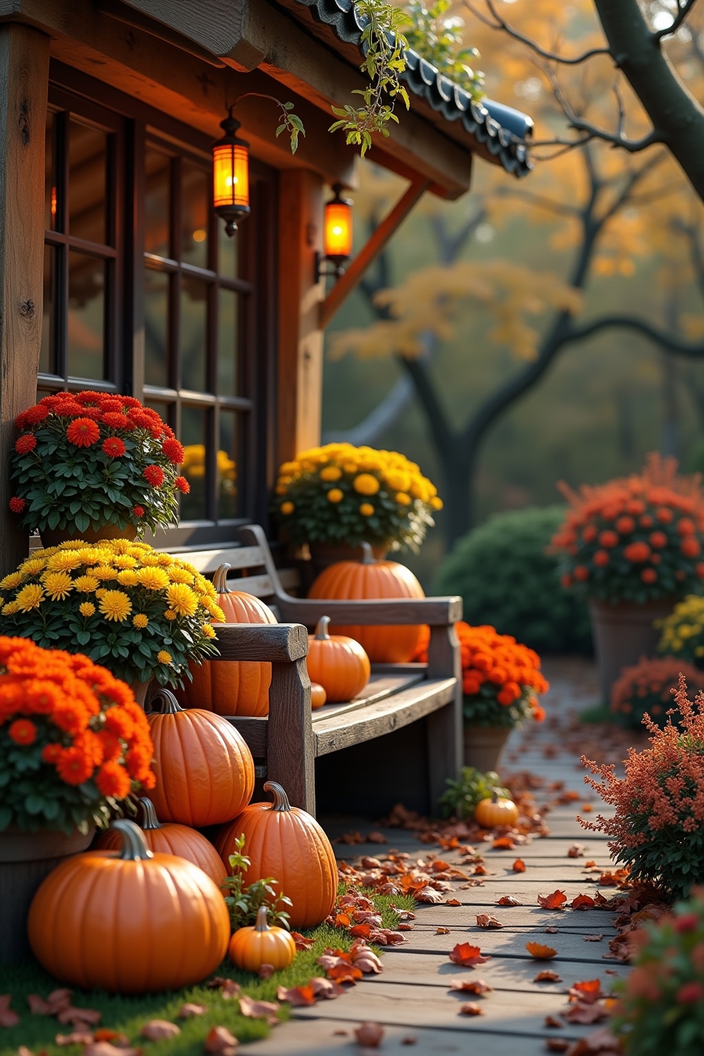5. Herbst: Kürbis-Arrangements in verschiedenen Größen und Farben