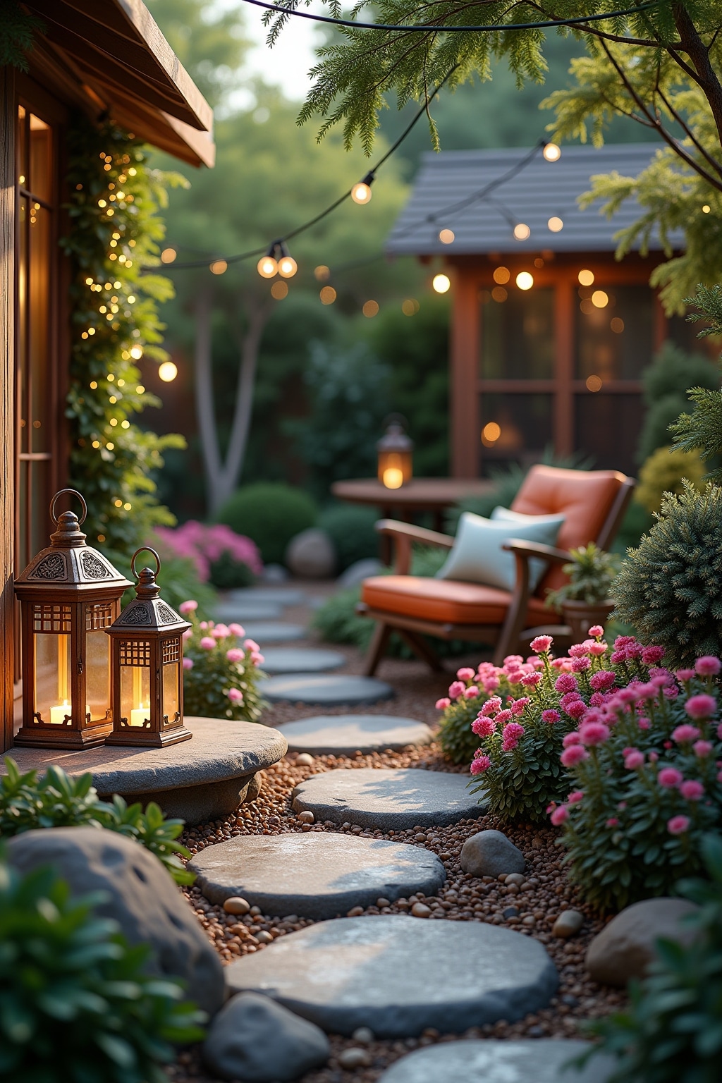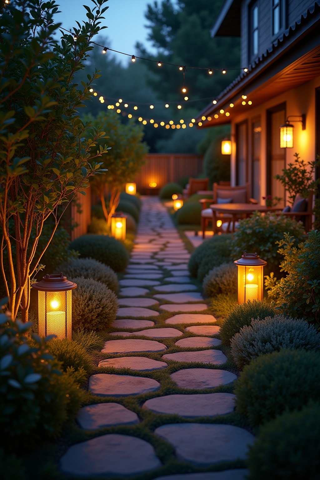 10. Windlichter und Glaslaternen entlang von Beeten für eine romantische Gartenatmosphäre