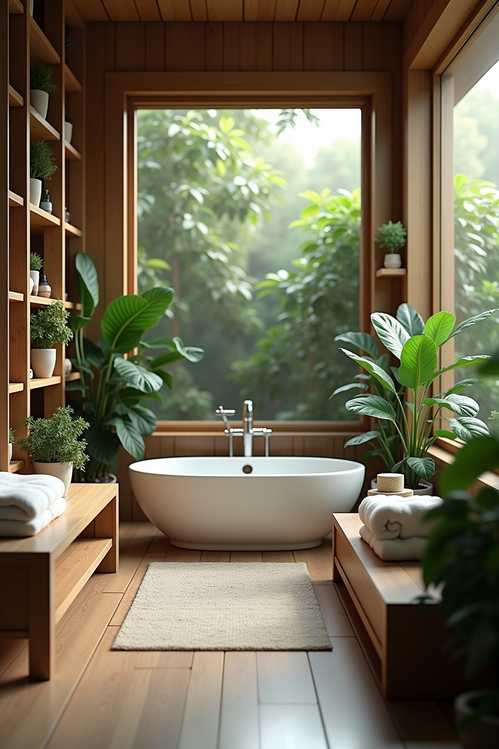 • Pflanzenintegration: Feuchtigkeitsliebende Grünpflanzen für natürliche Frische