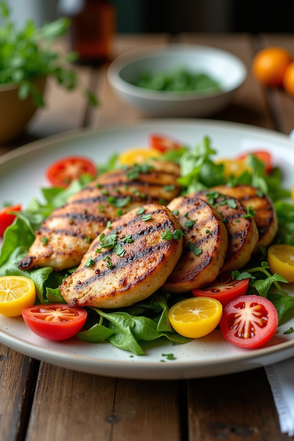 1. Lemon-Herb Grilled Chicken with Roasted Vegetables (385 calories)