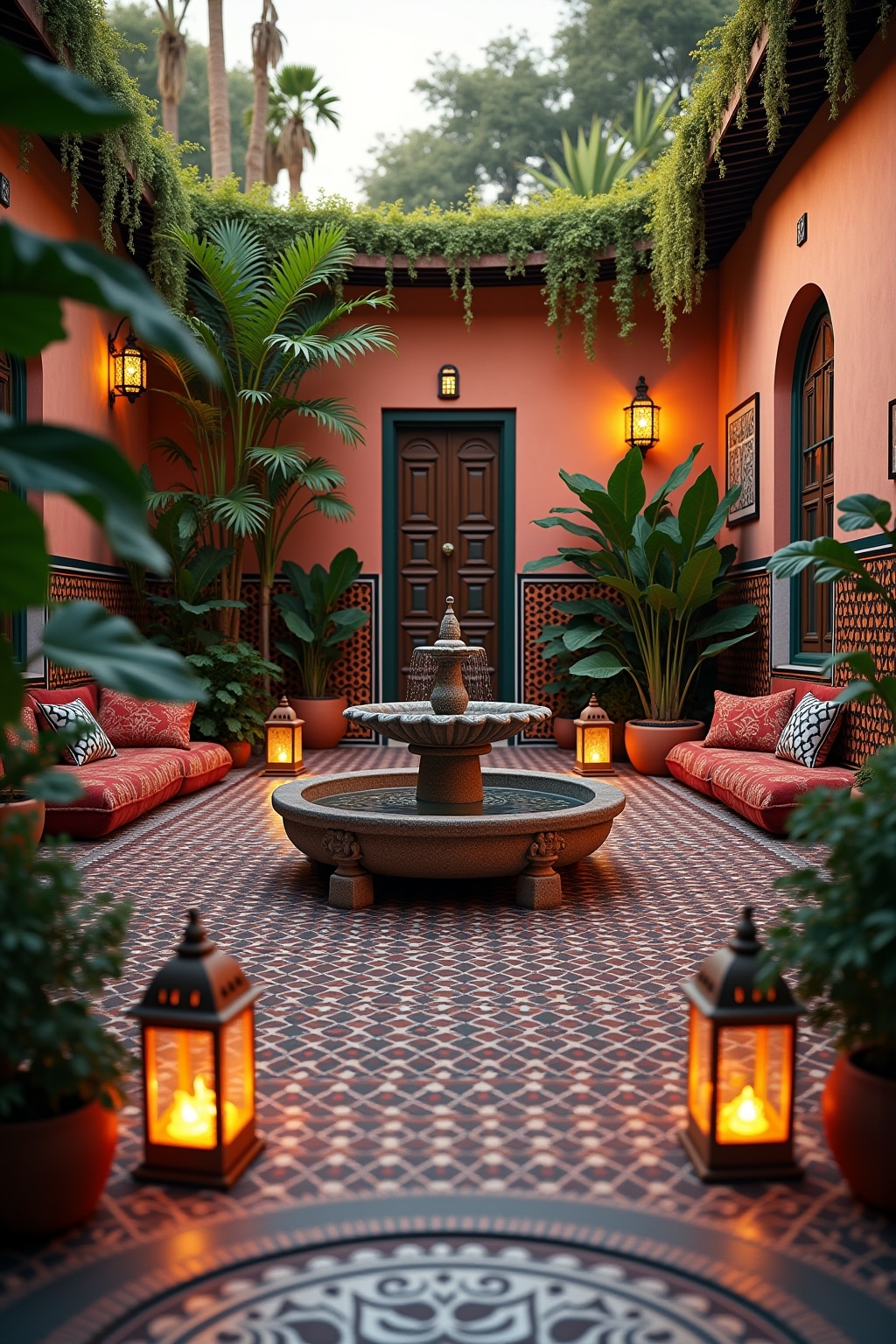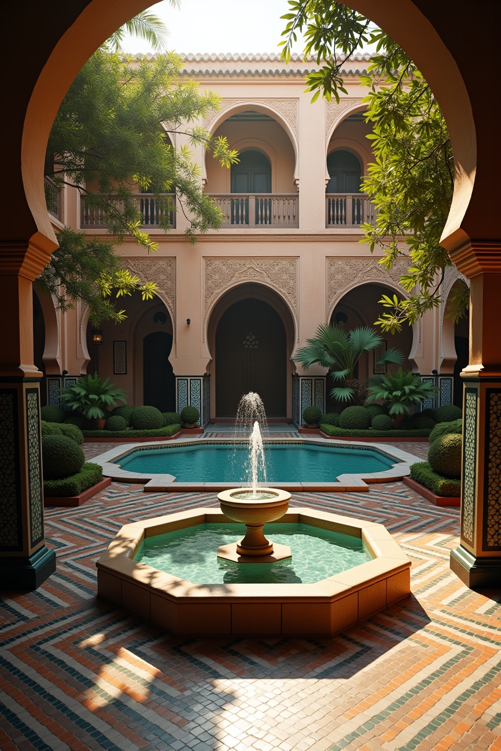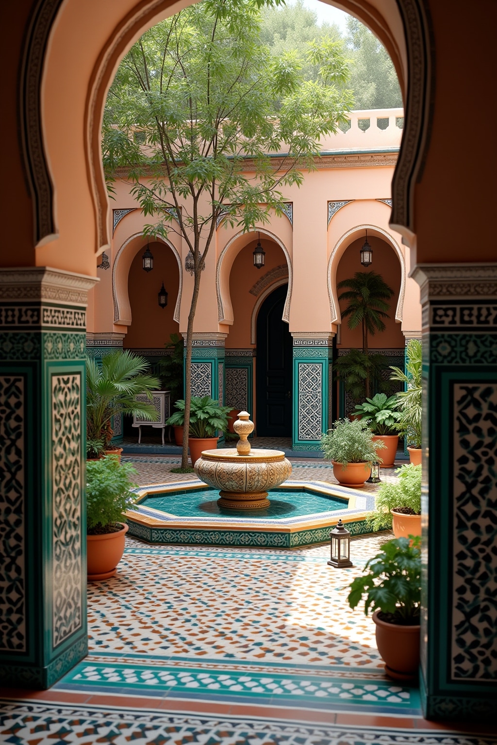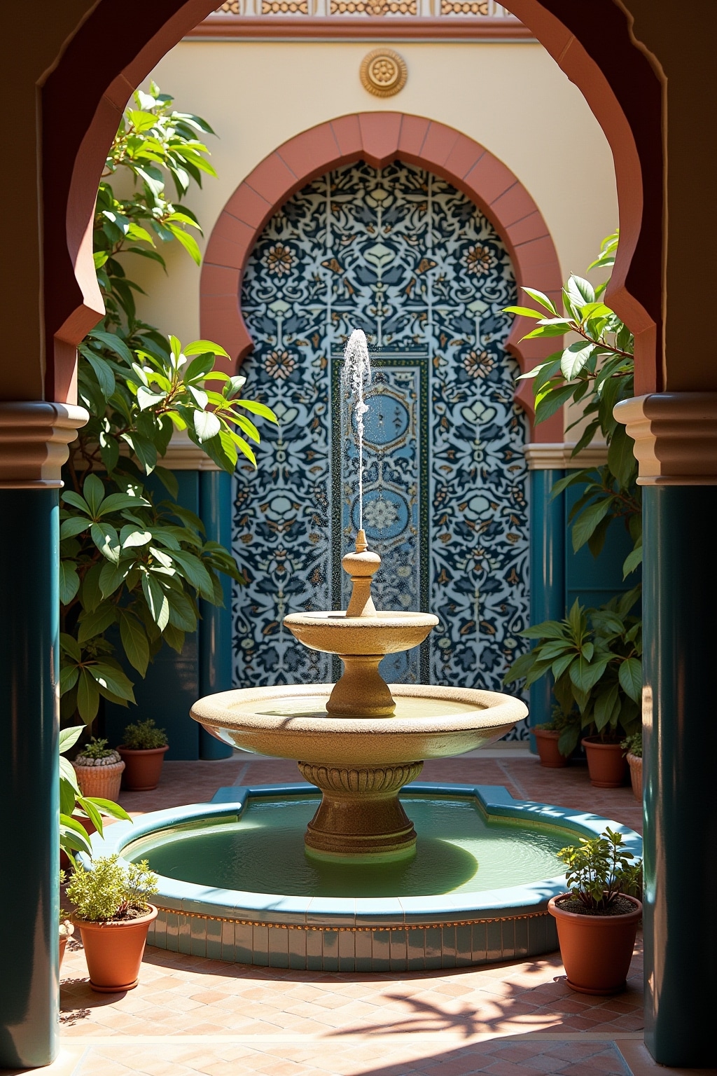 • Marokkanischer Mosaikbrunnen als zentraler Blickfang