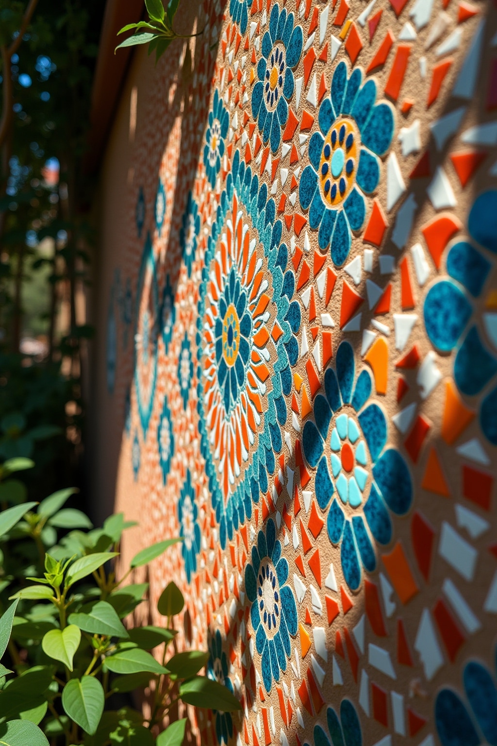 • Verzierte Gartenmauer mit integrierten marokkanischen Fliesenmustern