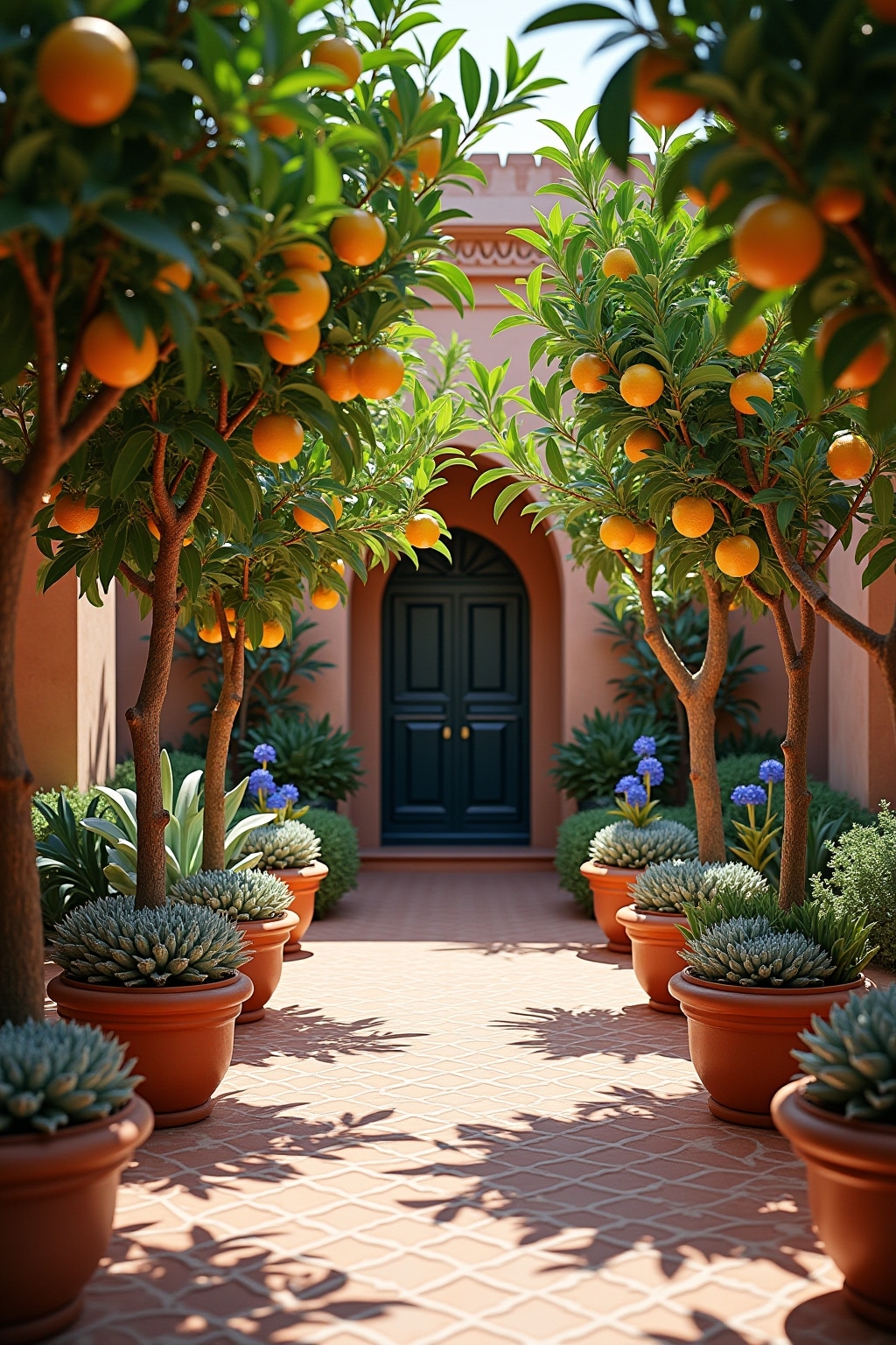 1. Zitronenbäume und Orangenbäume in Terrakotta-Kübeln