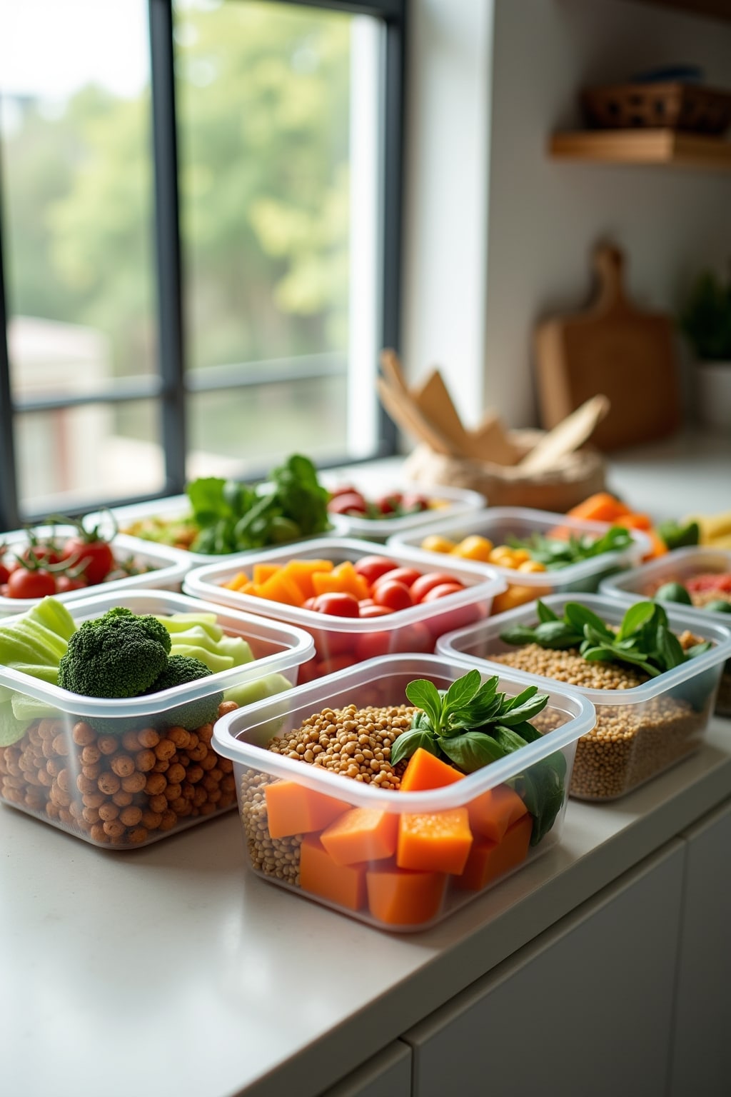 4. Cook grains and starches (rice, quinoa, pasta) ahead of time and refrigerate in portioned containers.