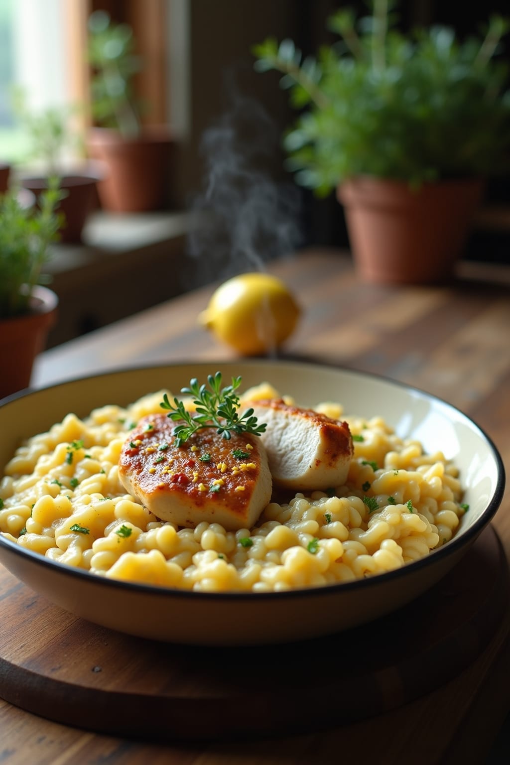 2. Lemon-Herb Leftover Chicken Risotto with Fresh Thyme