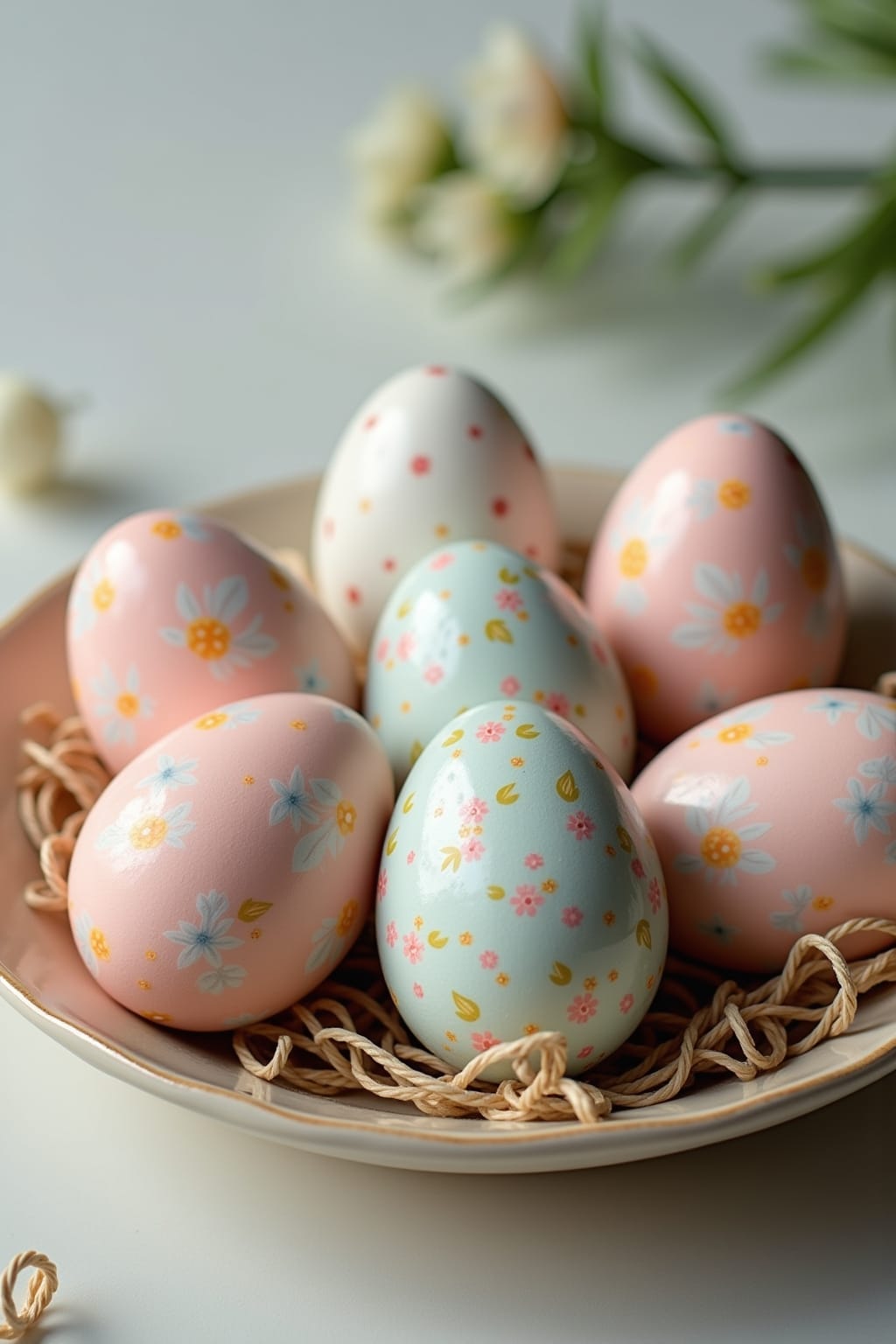 1. Einfarbige Eier in Pastelltönen mit kleinen weißen Tupfern