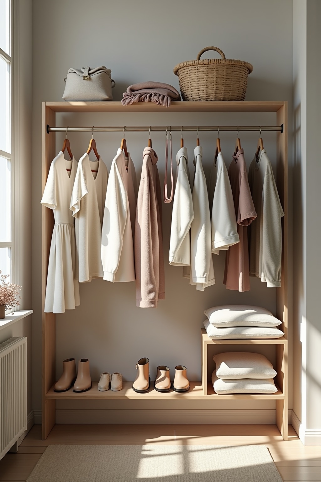 4. Integriere Schuhregal-Systeme unter hängender Kleidung