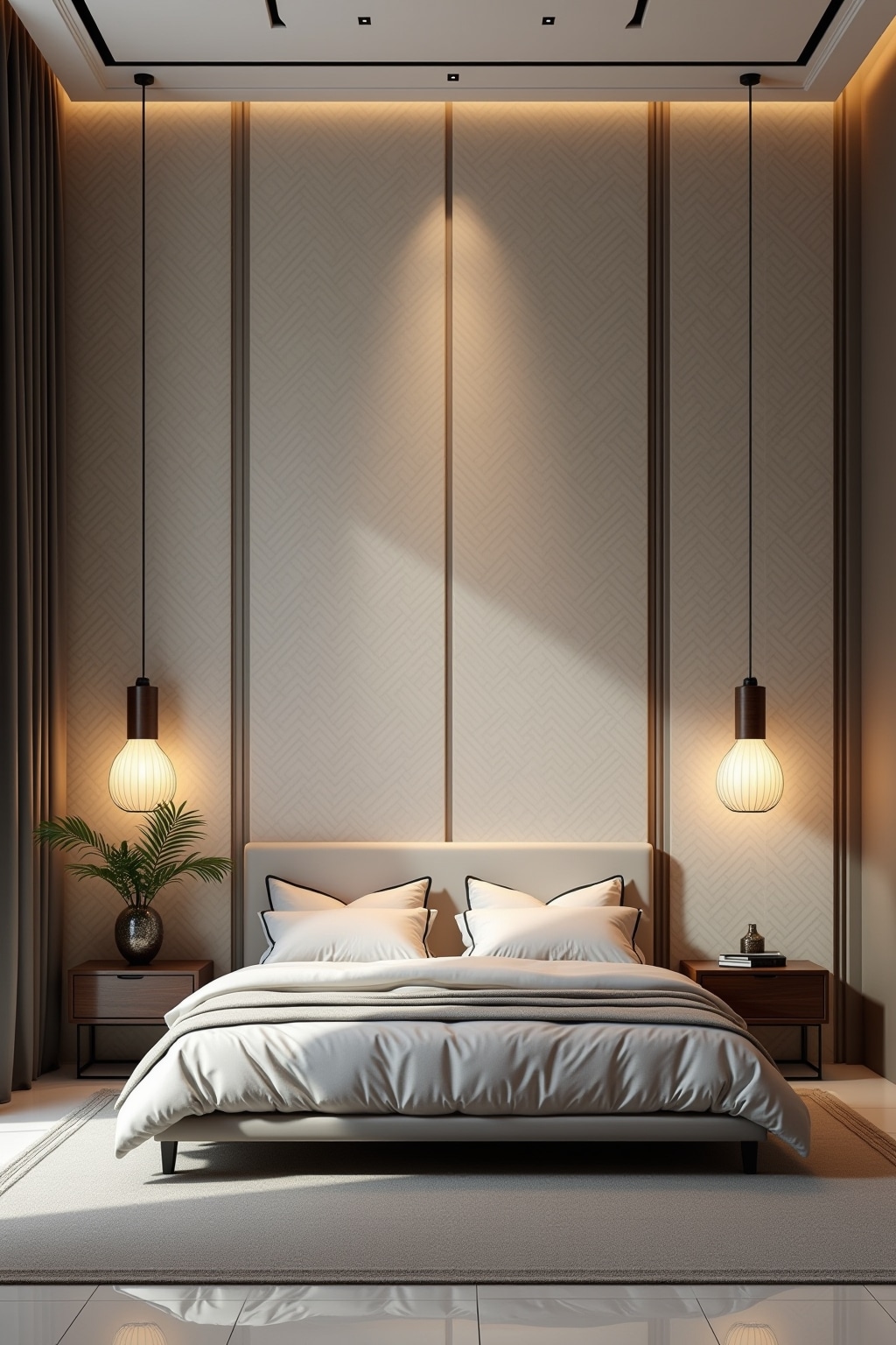 4. Moderne Pendelleuchten in asymmetrischer Anordnung neben dem Bett