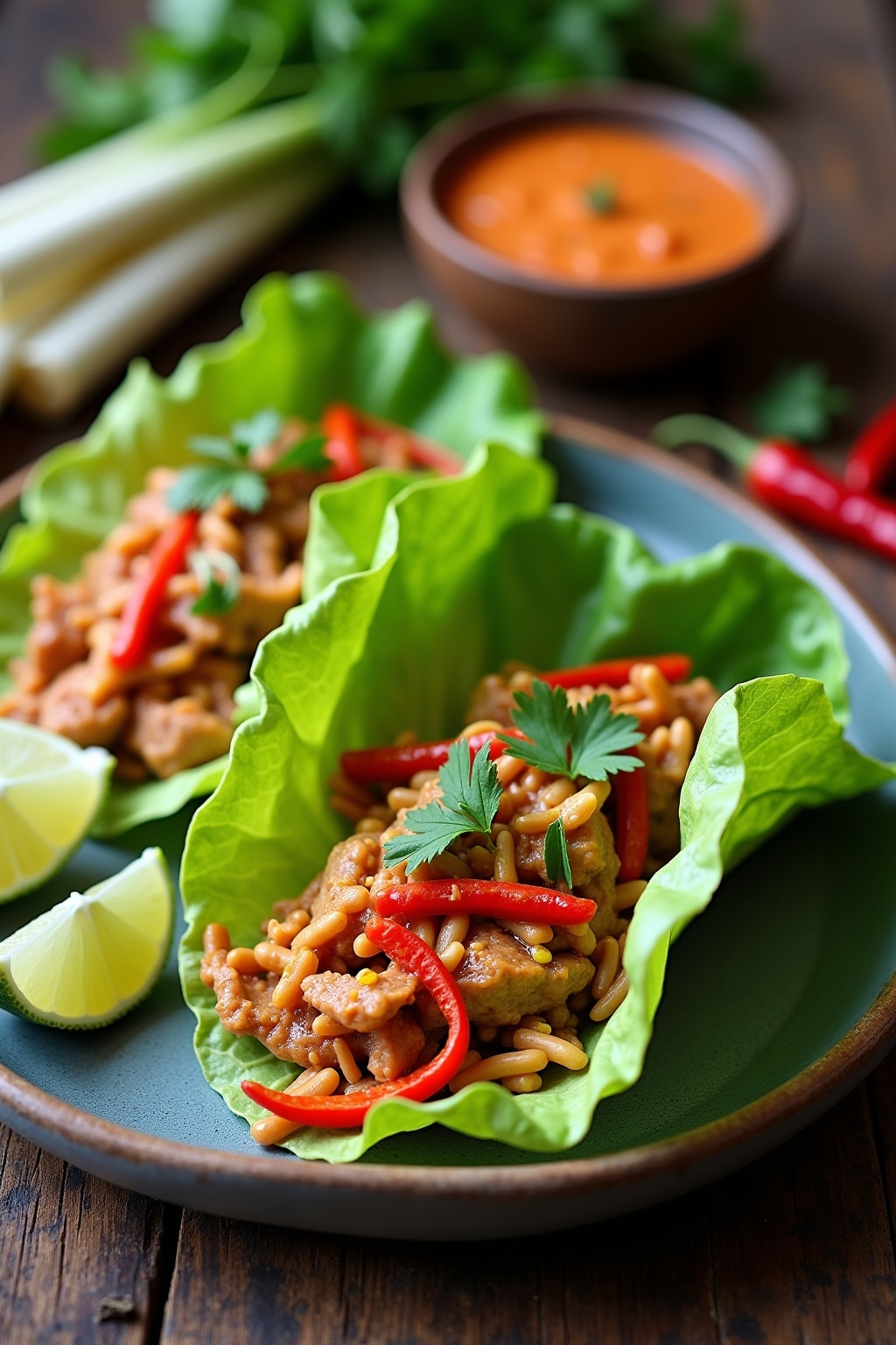 Spicy Thai-Style Turkey Lettuce Wraps with Lemongrass and Lime