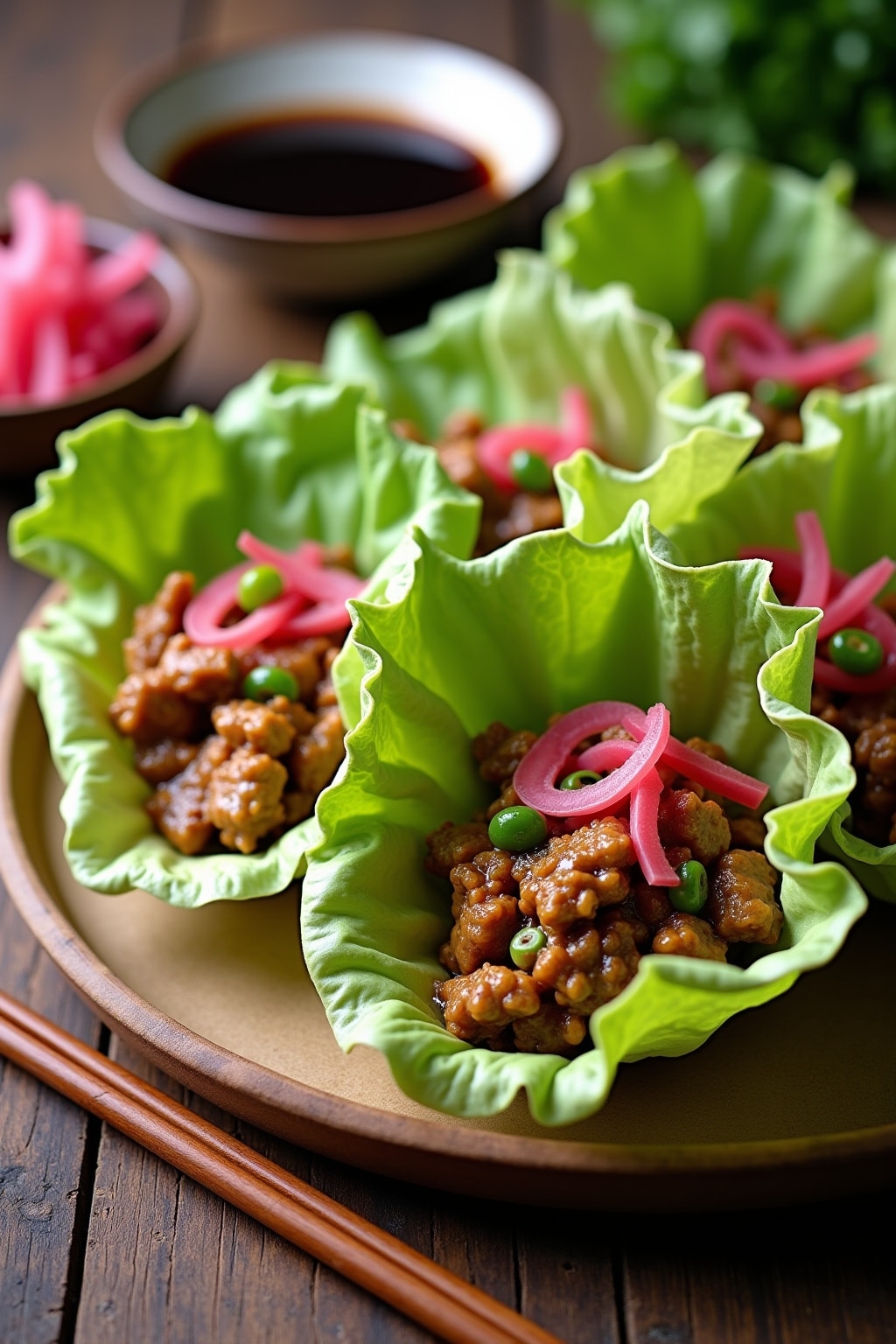 Japanese Teriyaki Turkey Lettuce Wraps with Pickled Ginger