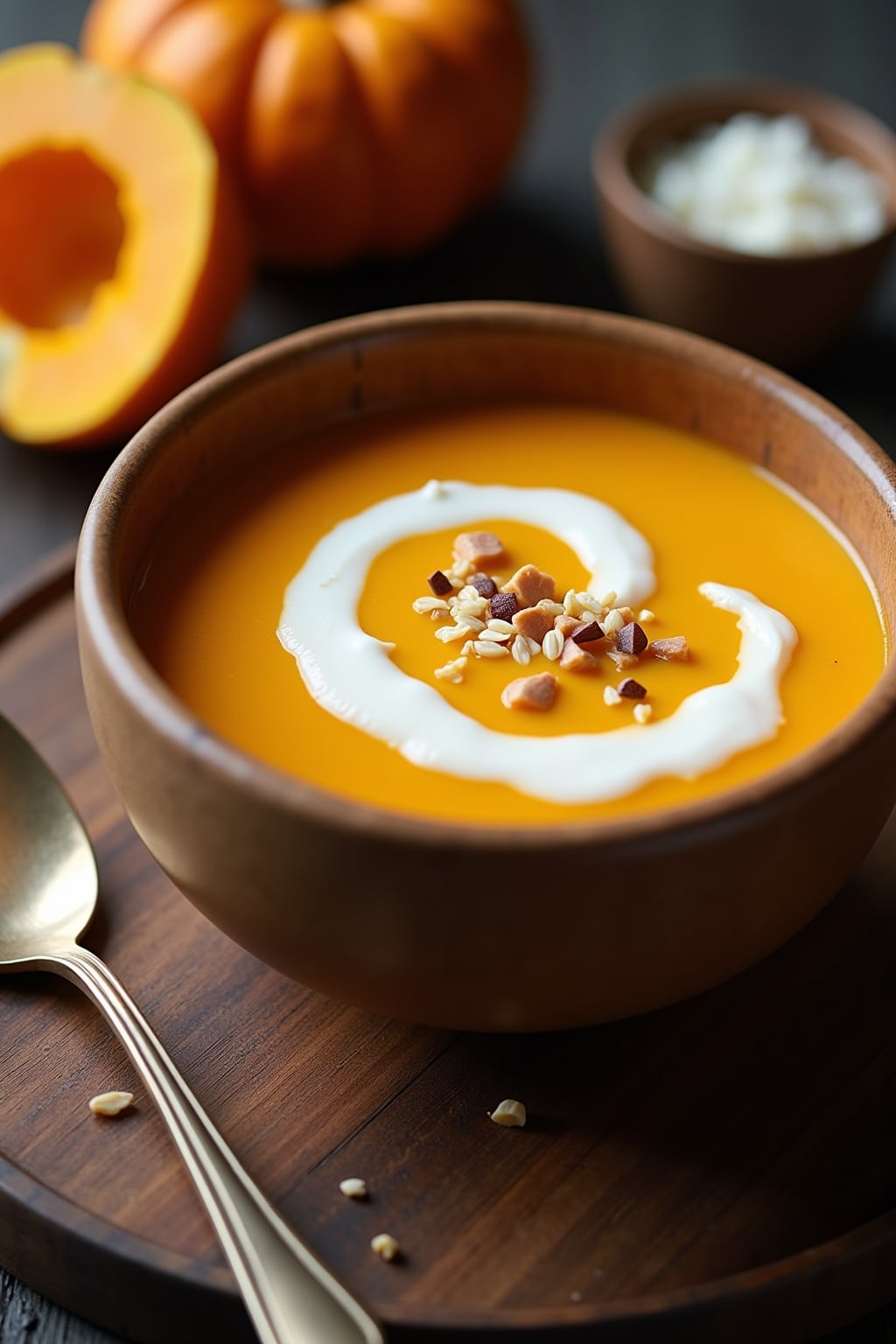 18. Garnish with pumpkin seeds and a swirl of cream